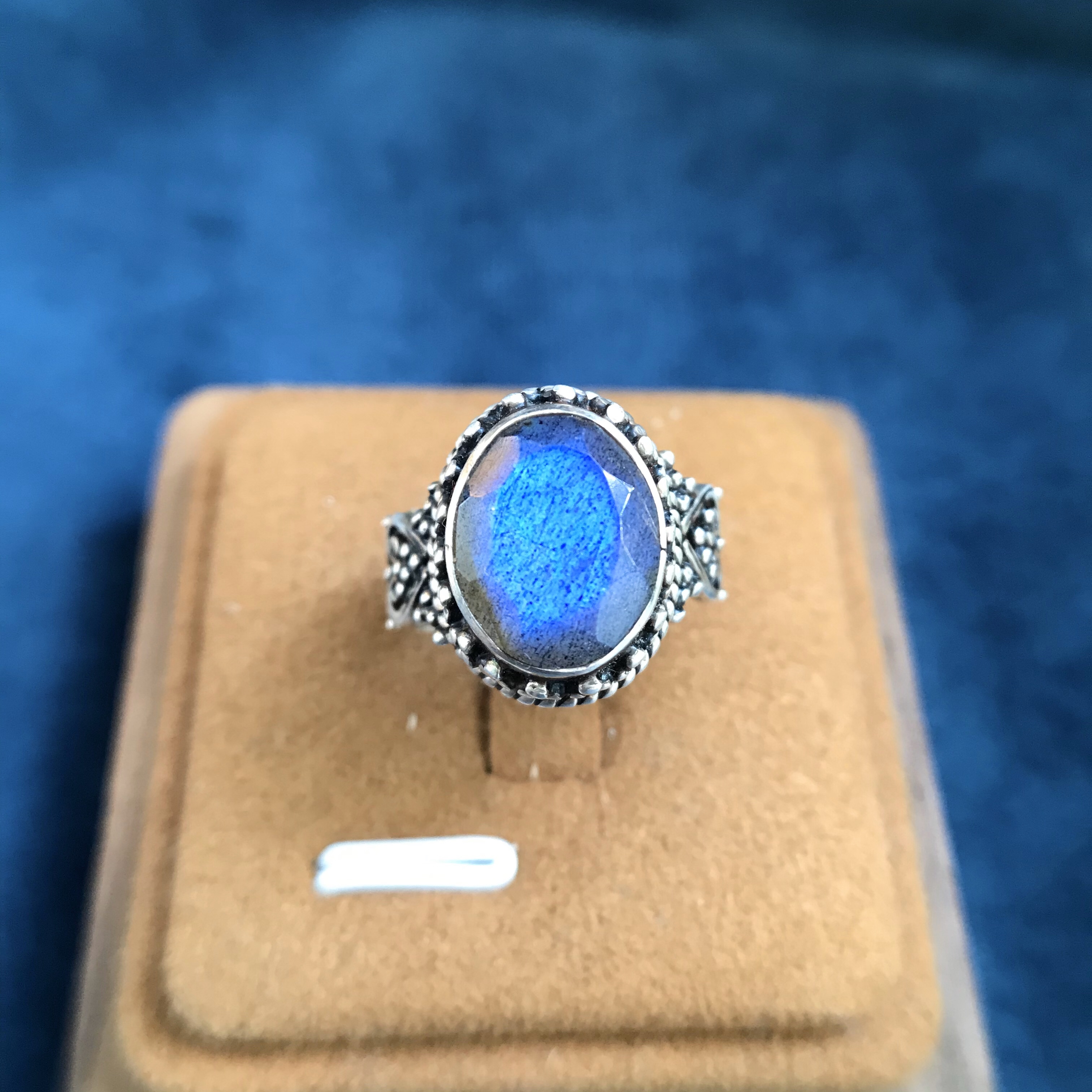 凉玥 尼泊尔纯手工制作设计感蛋面刻面拉长石925纯银戒指男女礼物