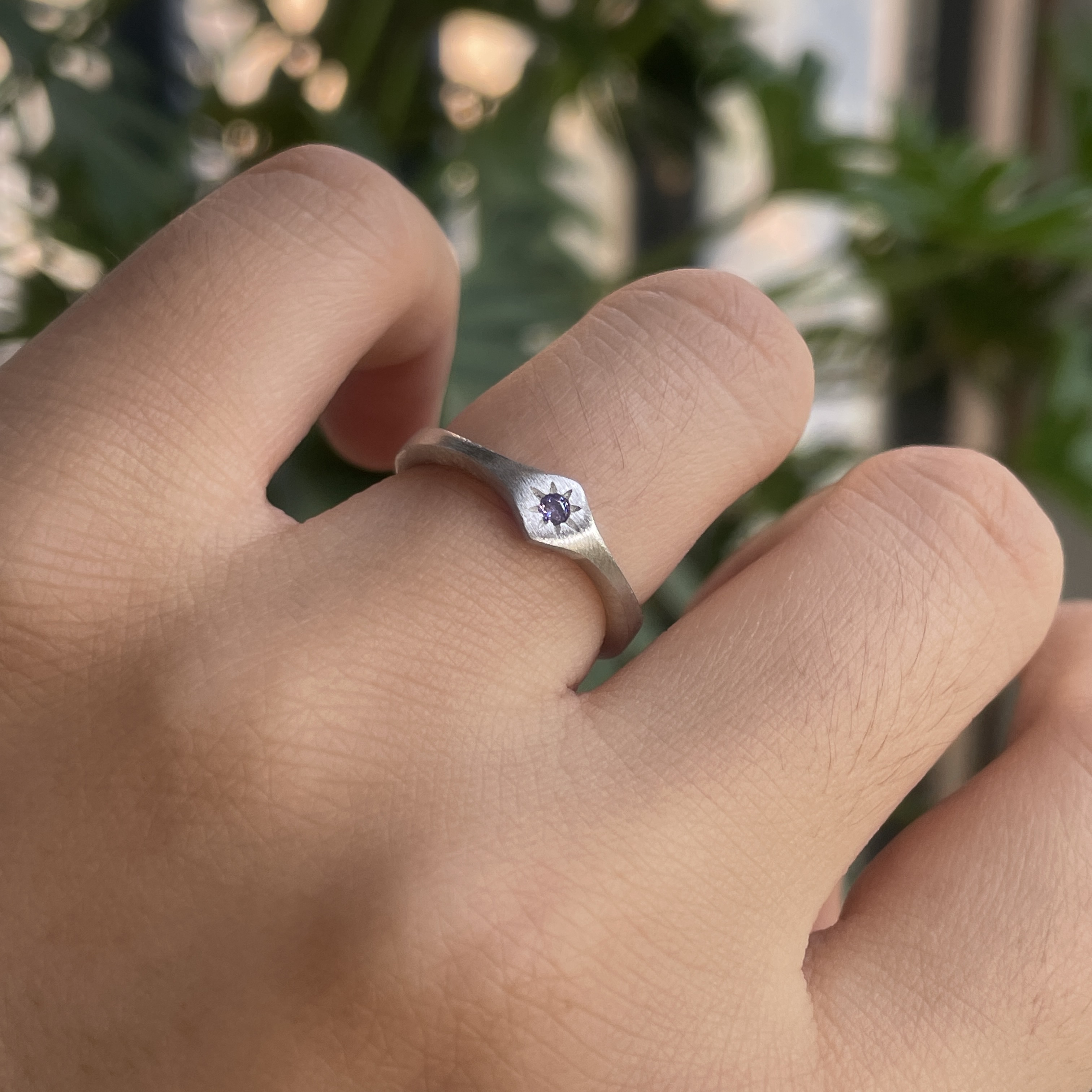 【清仓特价】S925纯银拉丝质感开口设计戒指镶嵌紫色锆石时髦清冷