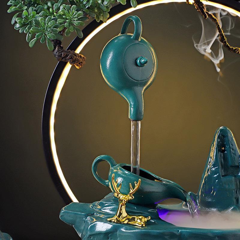 陶瓷流水摆件喷泉办公桌面装饰禅意流水摆件招财鹿摆件
