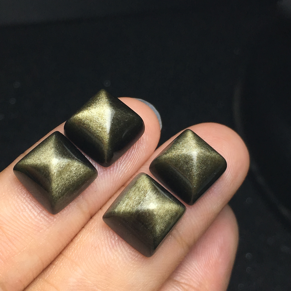 糖塔!天然金/银曜石方形戒面裸石镶嵌绕线戒面吊坠耳钉猫眼金线