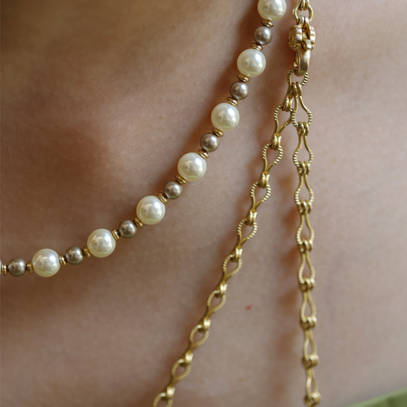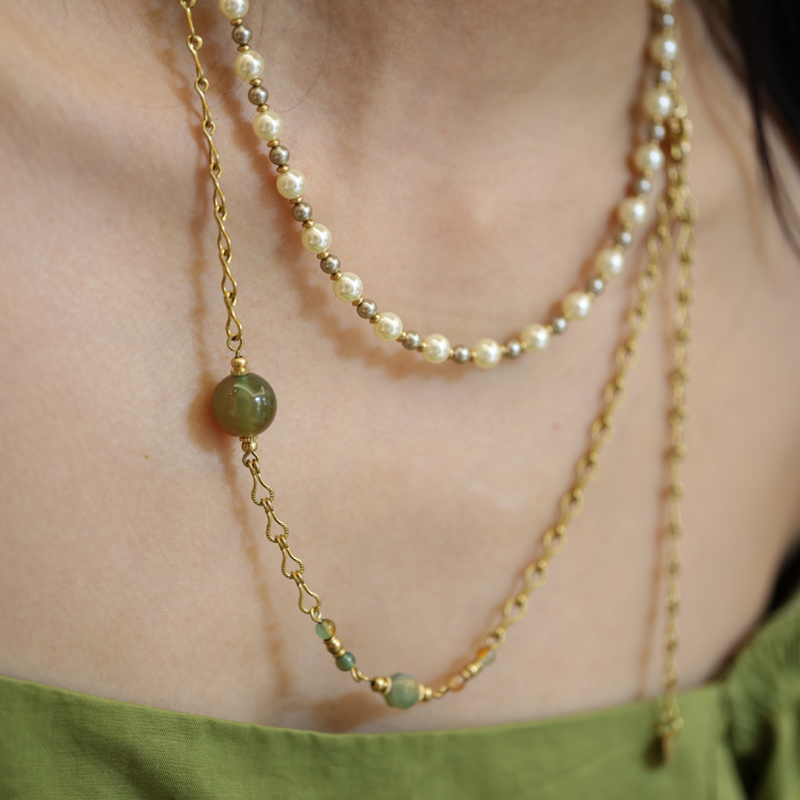 屿棠造饰复古黄铜相盒白蝶贝施家水晶珍珠玛瑙叠戴小众设计师项链
