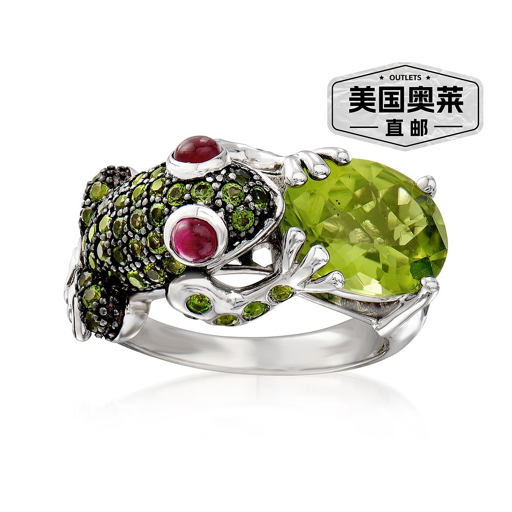 自营 925 纯银 Ross-Simons 多宝石青蛙戒指 - 绿色 美国奥莱直发