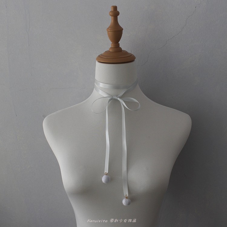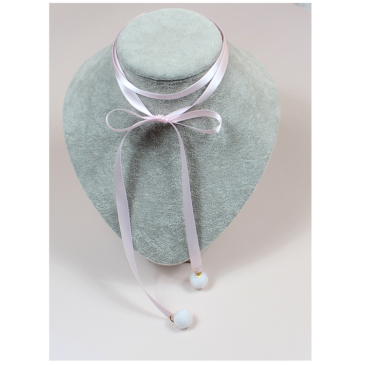 可爱甜妹甜美粉色白毛球绑带choker项链锁骨链脖圈项圈秋冬配饰女