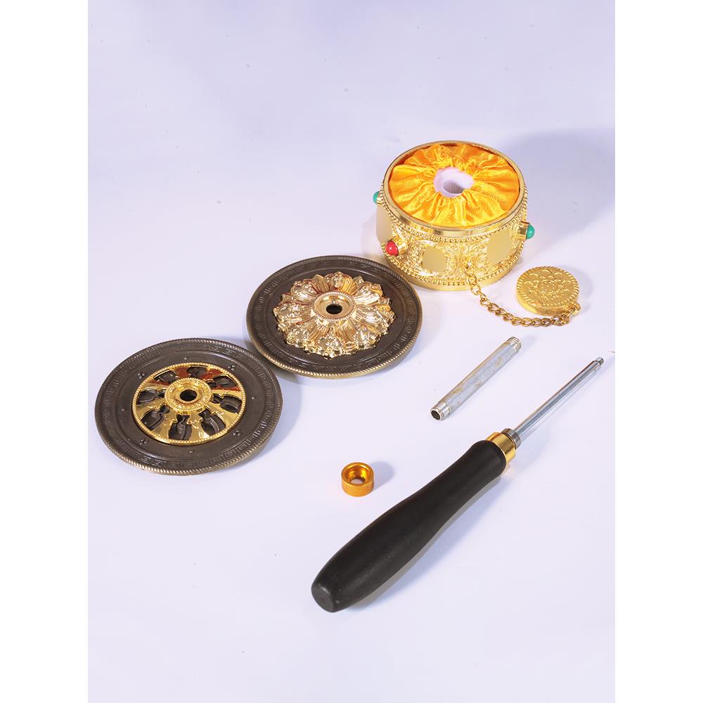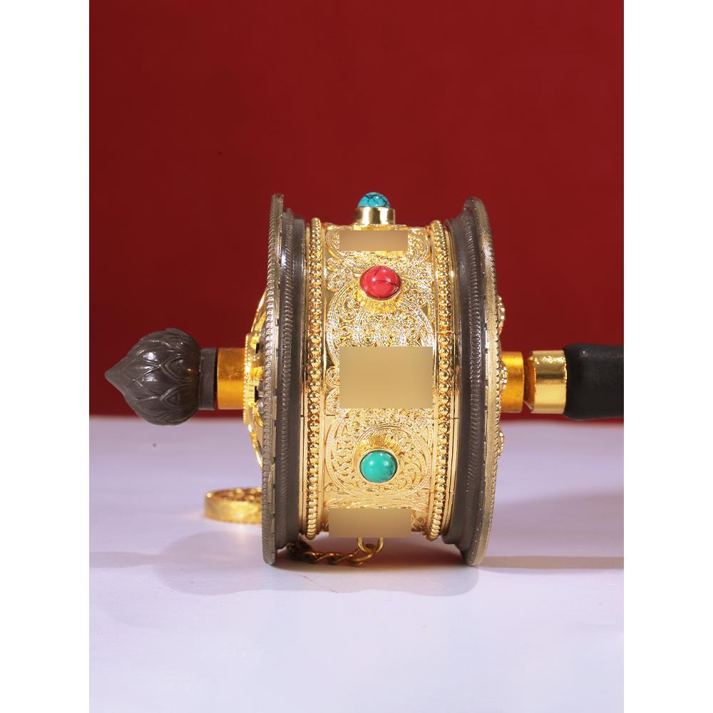 合金藏式手摇转筒家用立体浮雕手摇双轴承桶实木随身用摆件白黑色