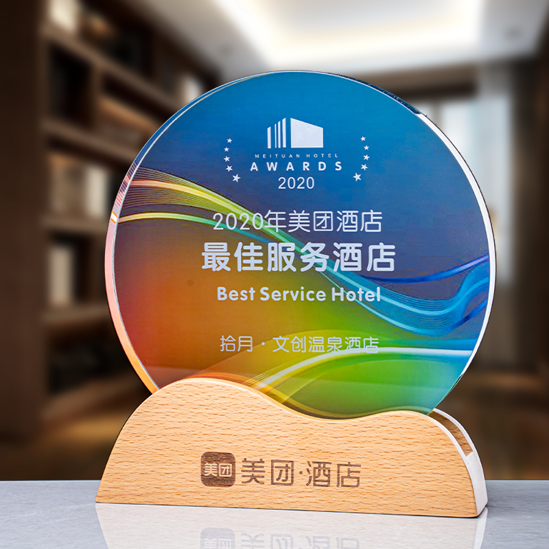 实木质水晶奖杯定制做2021高档大气创意刻字奖牌授权牌优秀员工