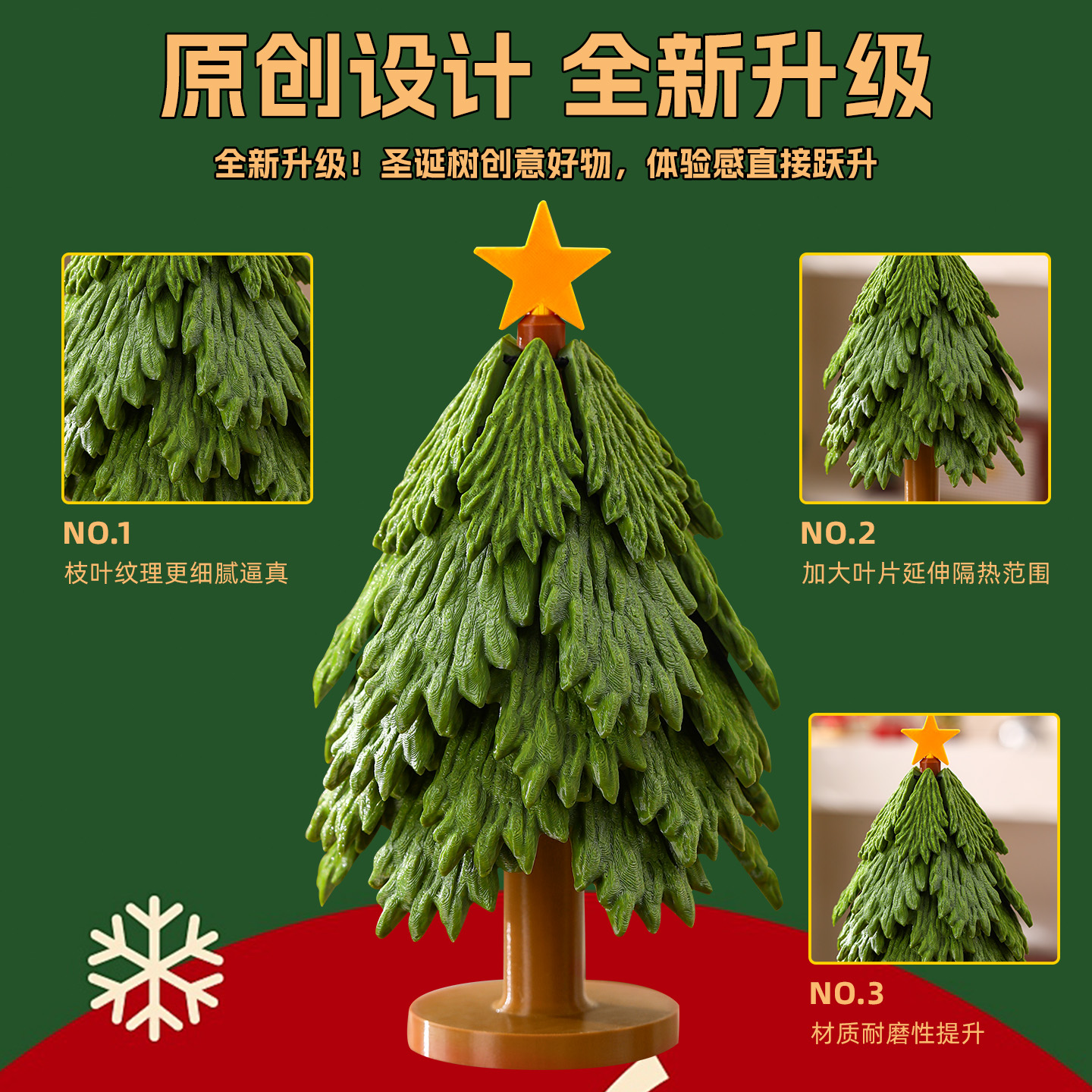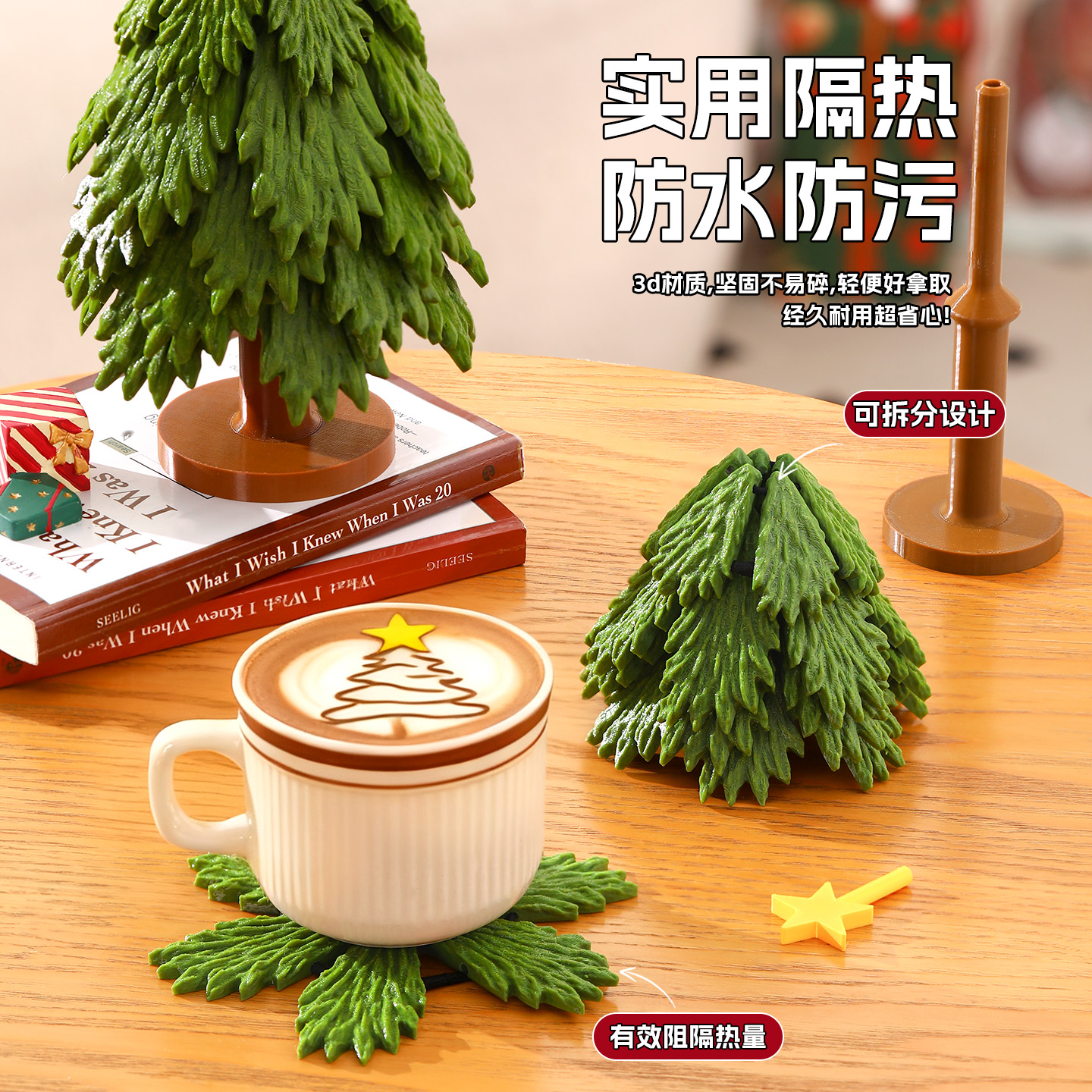 圣诞树隔热垫餐桌高级感摆件创意仿真树实木防烫锅垫折叠杯垫碗垫