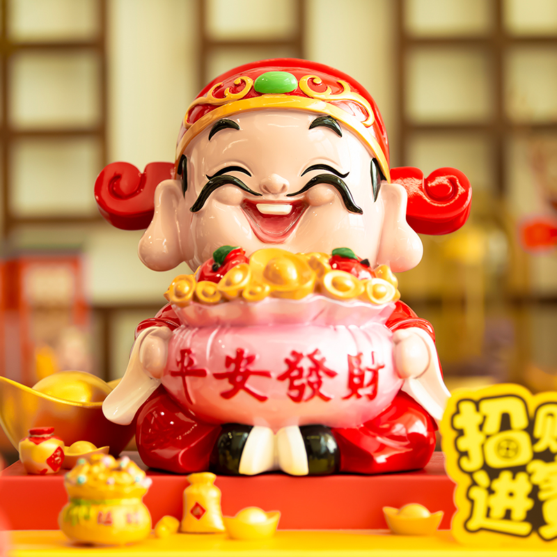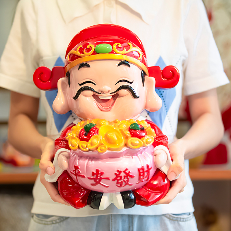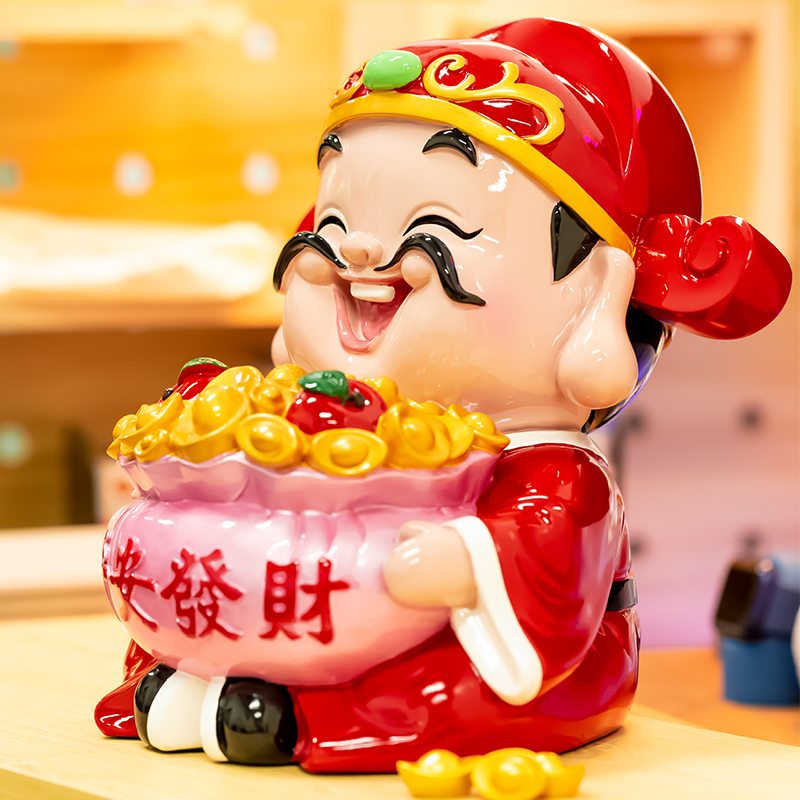 妙工坊财神爷摆件家用家居饰品酒柜玄关装饰品聚财存钱罐开业礼物