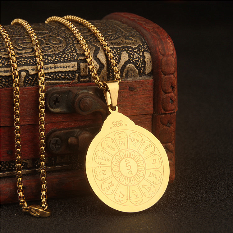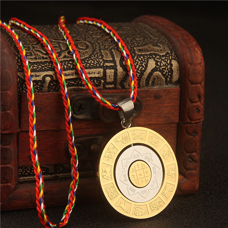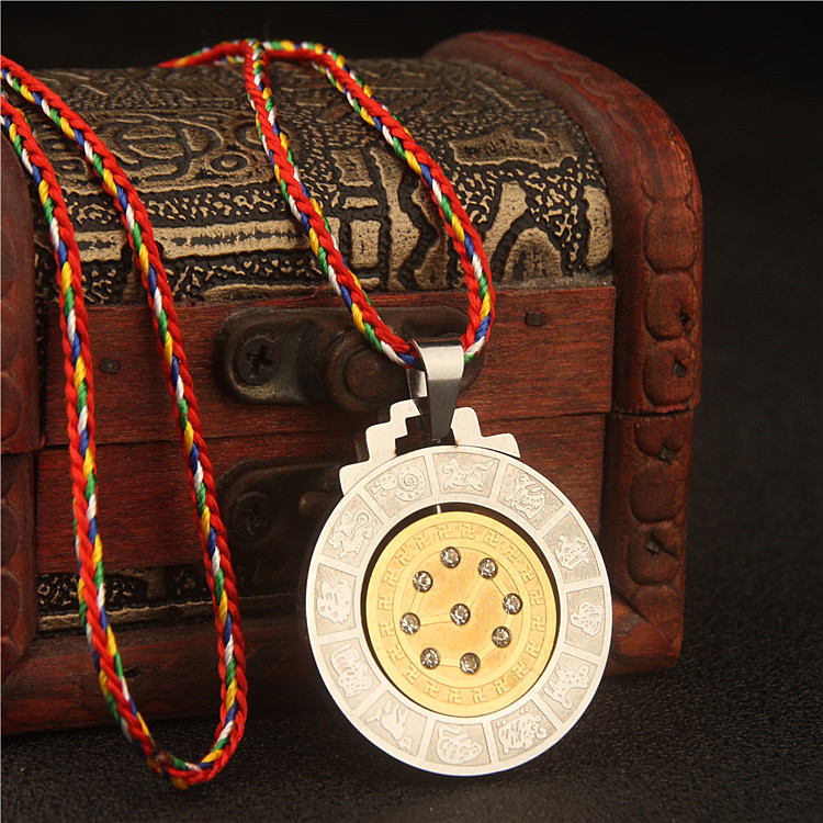 螺旋可转动罗盘六字真言文殊心咒十二生肖九宫八卦挂件项链男吊坠