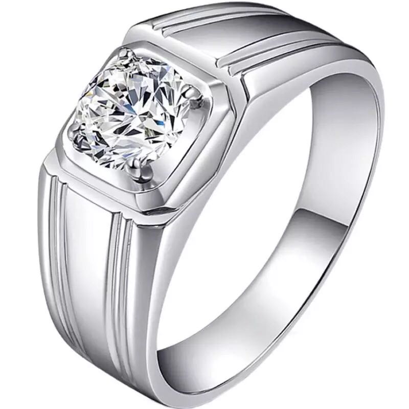 pt950铂金钻戒男士情侣结婚对戒仿真钻石戒指定制白金1克拉莫桑钻