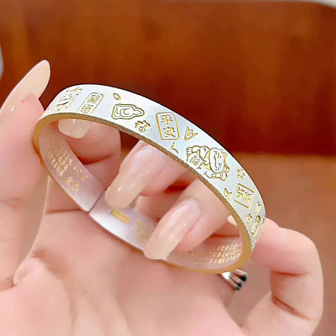 白铜描金吉言招财猫手镯女实心开口心经招财猫国风直播代发
