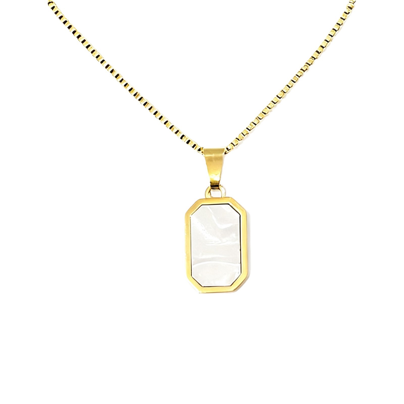 钛钢不掉色欧美时尚金色黑白双面长方牌项链 几何个性百搭锁骨链