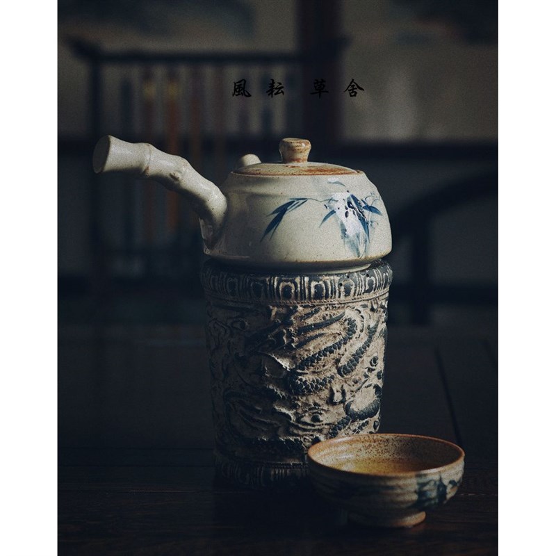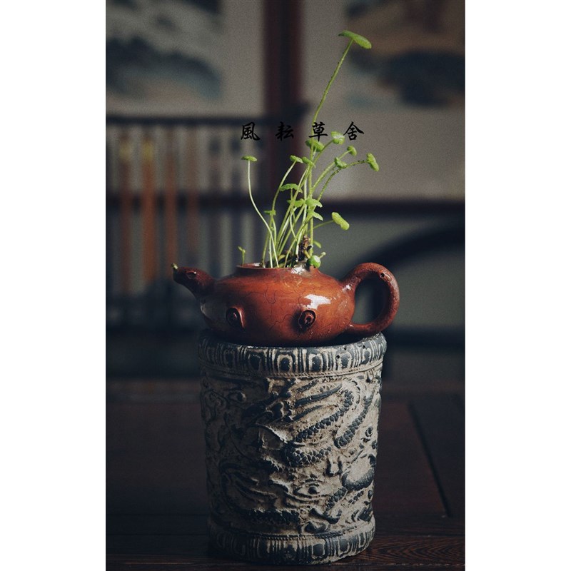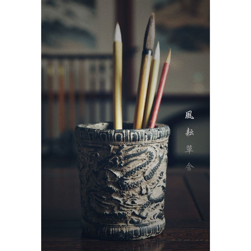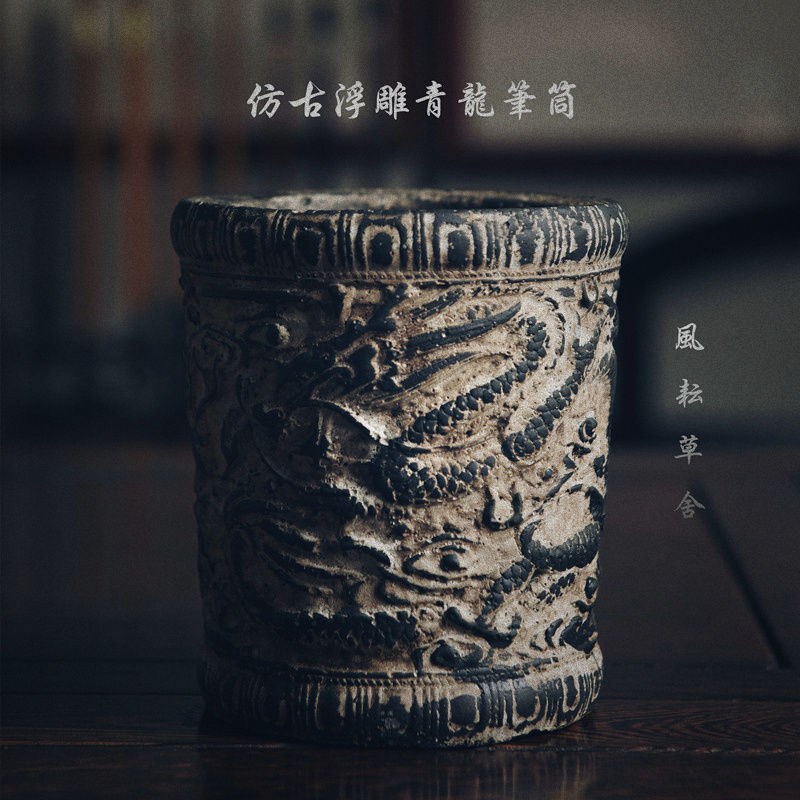 仿古中国风毛笔笔筒工艺品浮雕青龙创意书房装饰摆设摆件壶承花盆