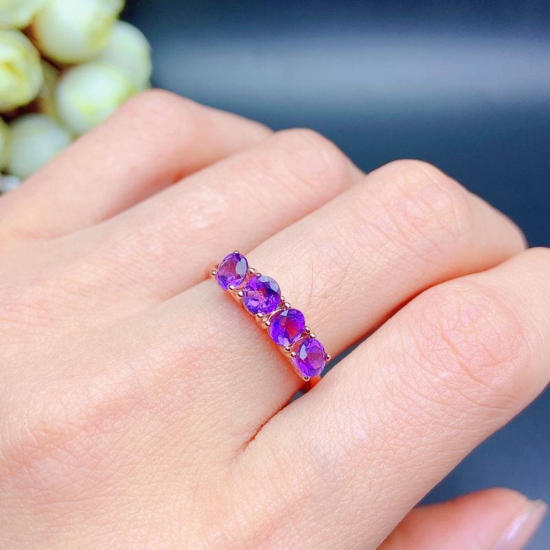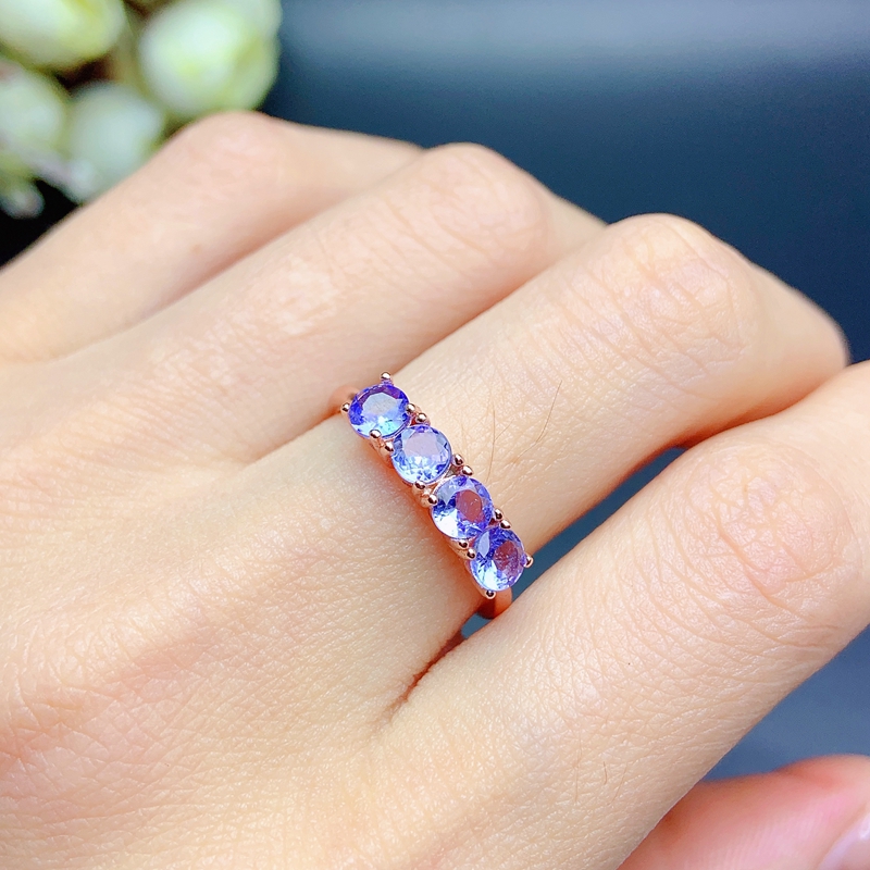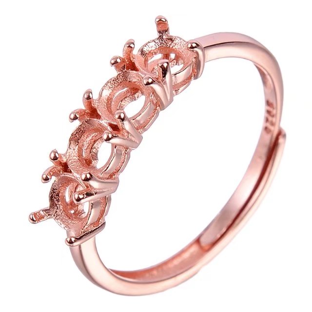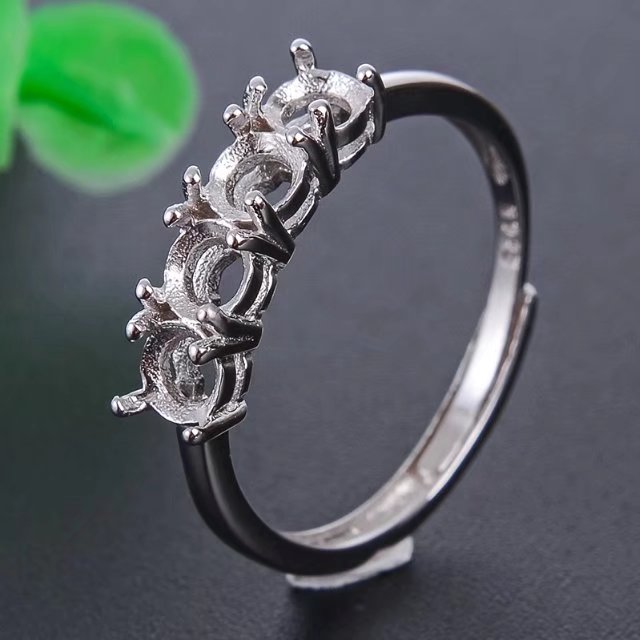 S925银女群镶圆形排戒指空托尺寸圆4*4mm可镶彩宝碧玺水晶翡翠等