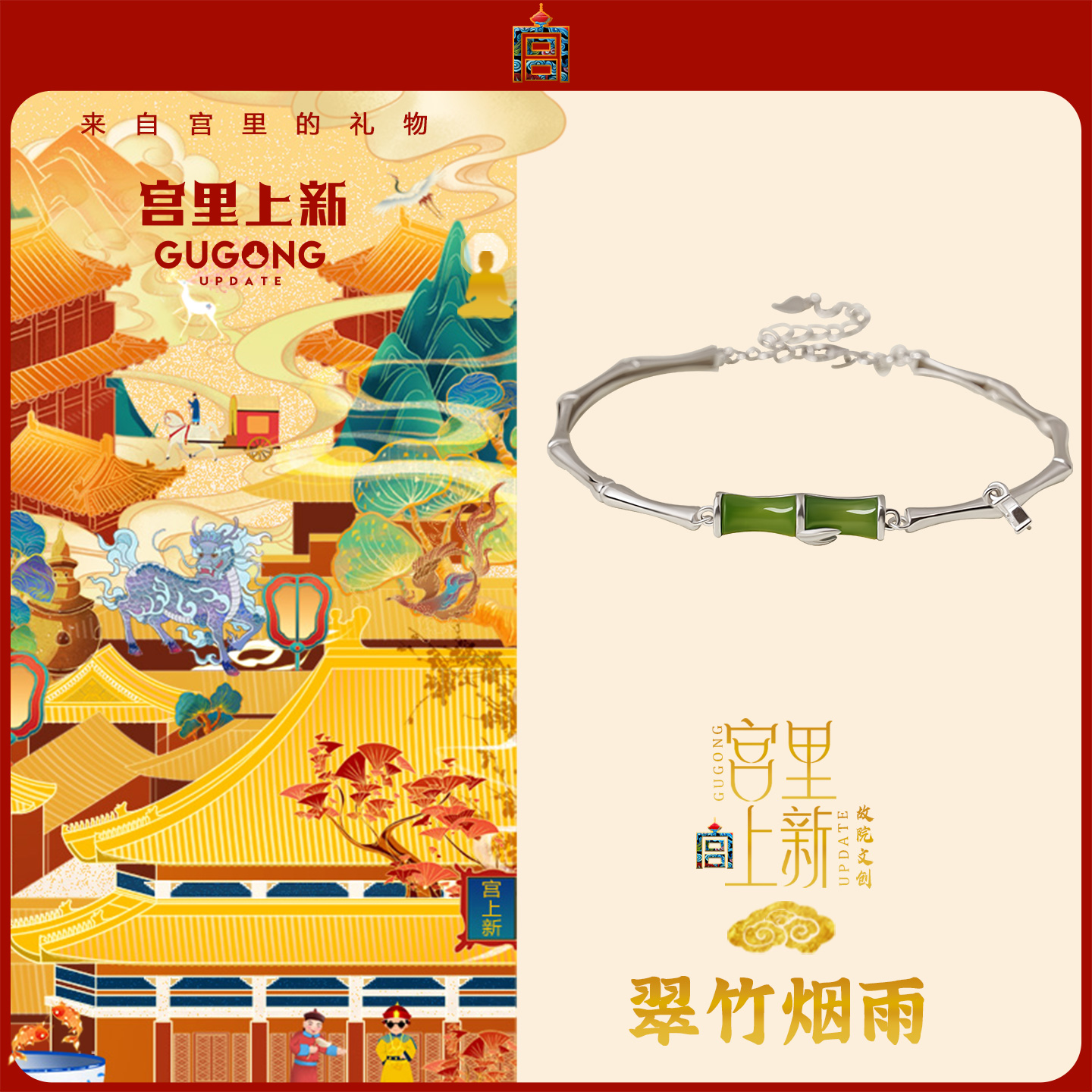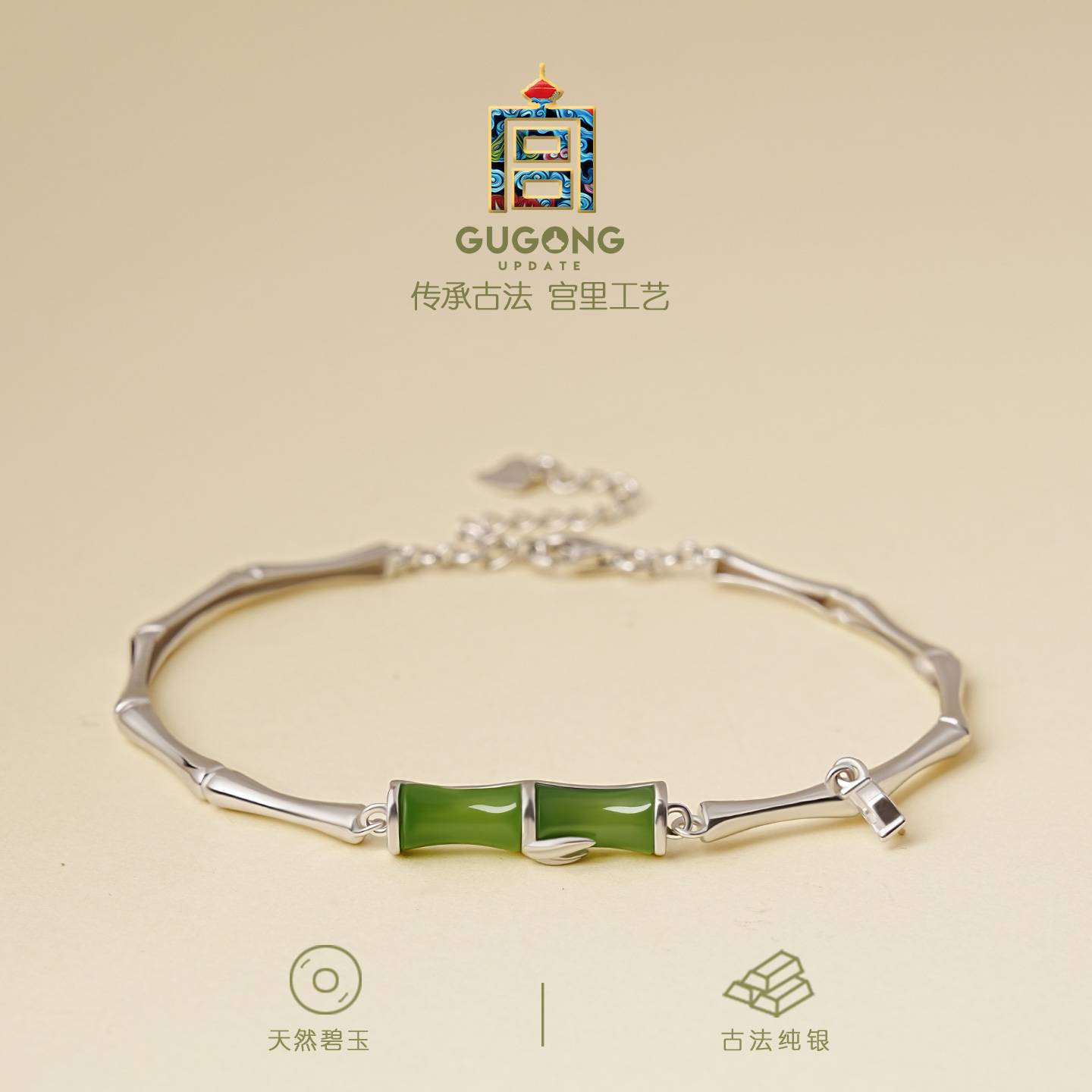 宫里上新银手链女纯银竹节天然和田玉新中式国风手饰生日礼物女生