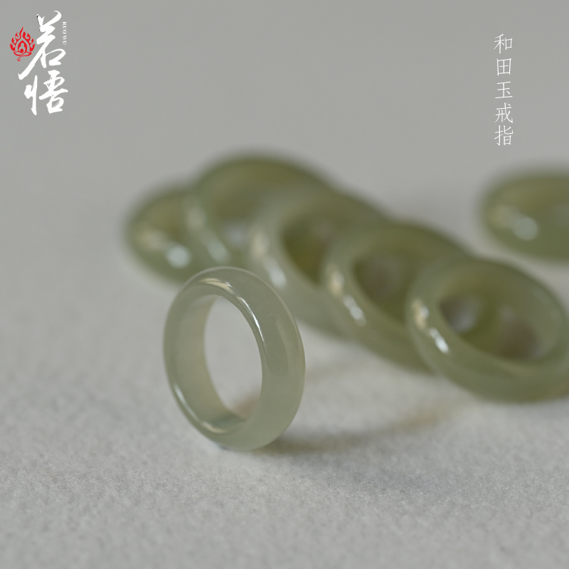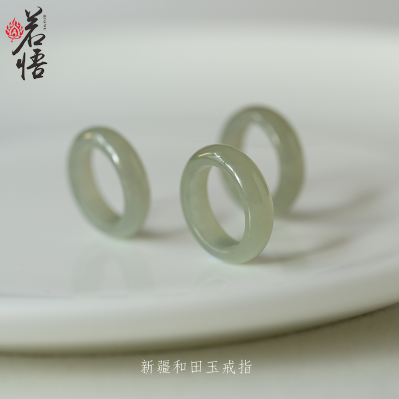 新疆和田玉戒指女正品冰晴水素圈指环扳指男款天然真玉戒圈食指戒