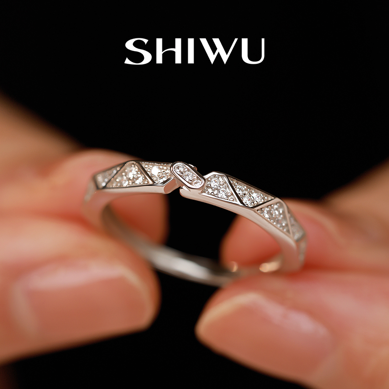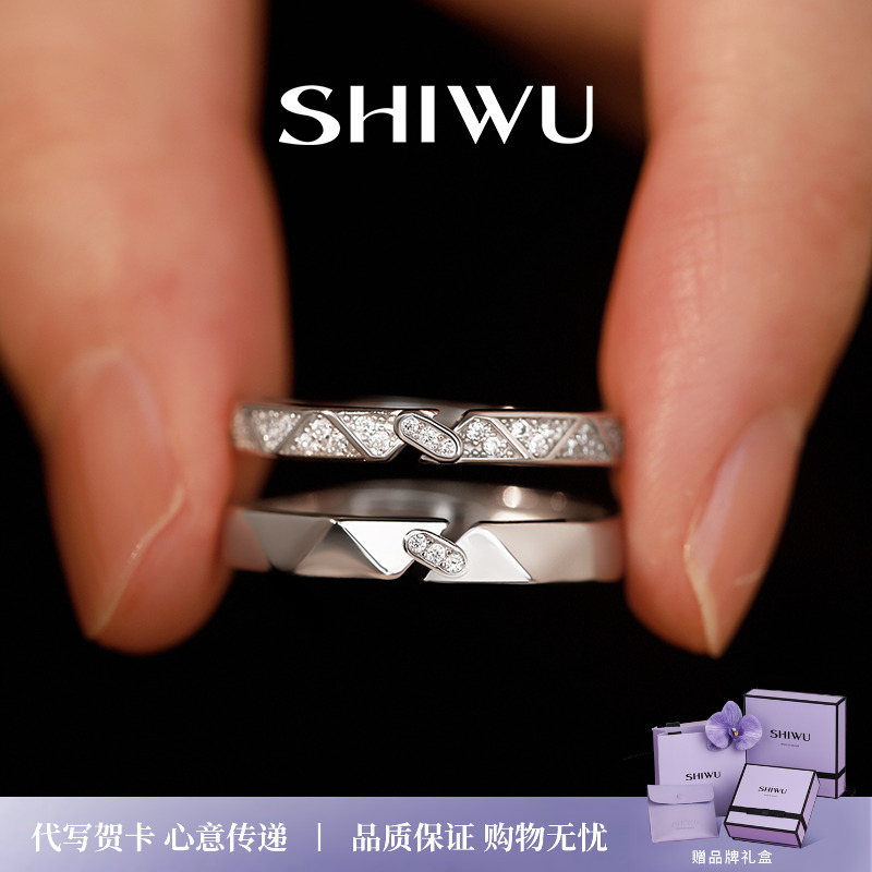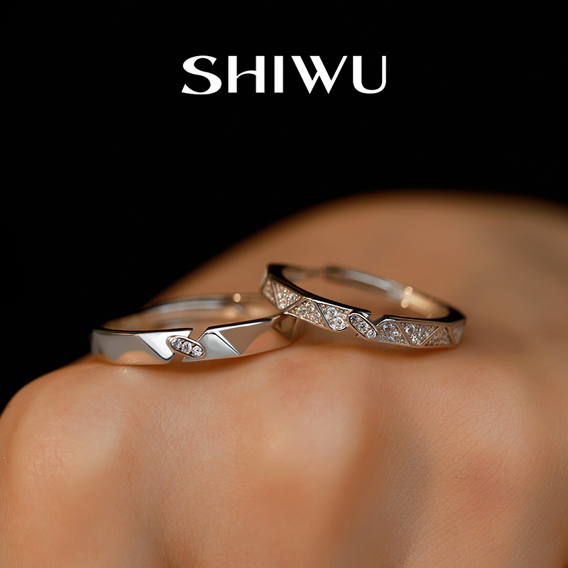 纸短情长情侣对戒S925纯银戒指设计感小众开口可调节送男友送女友
