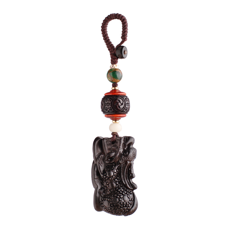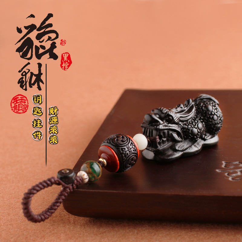 现货速发手工编织绳黑檀桃木雕刻貔貅随身扣包挂件饰品礼物大箱