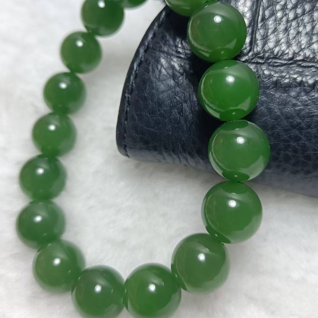 强烈推荐高货七号矿和田碧玉老坑料圆珠手串颗颗圆润饱满颜色鲜亮