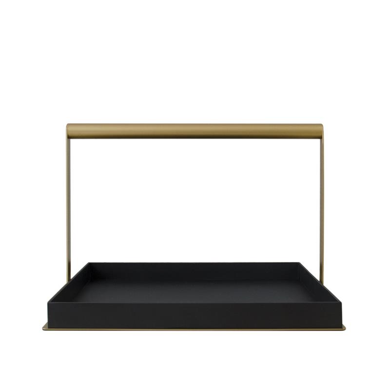 新中式创意铁艺方形手提托盘摆件样板房家居桌面软装饰品架子摆盘