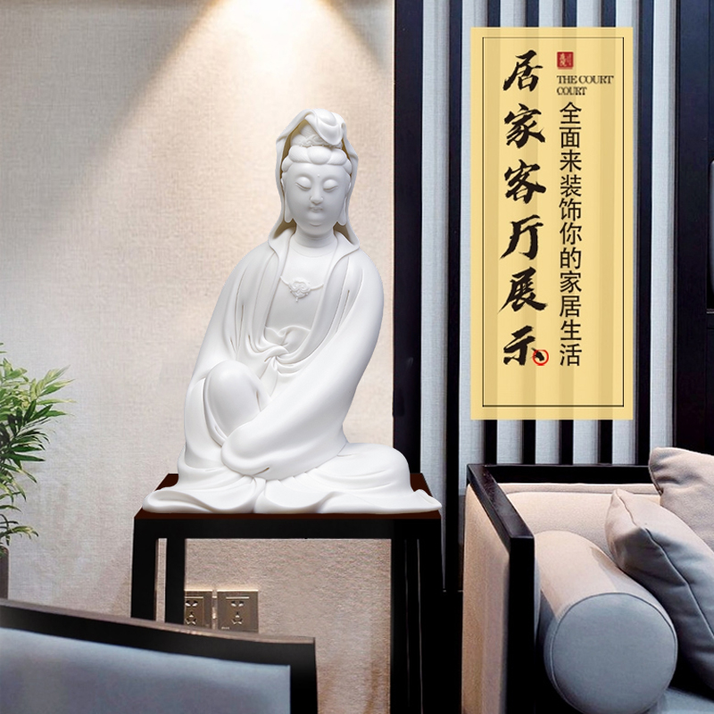 中式陶瓷送子观音佛像摆件家居供奉客厅如意净瓶菩萨装饰工艺品