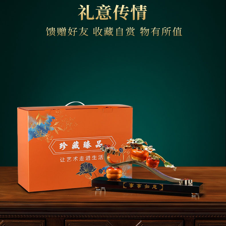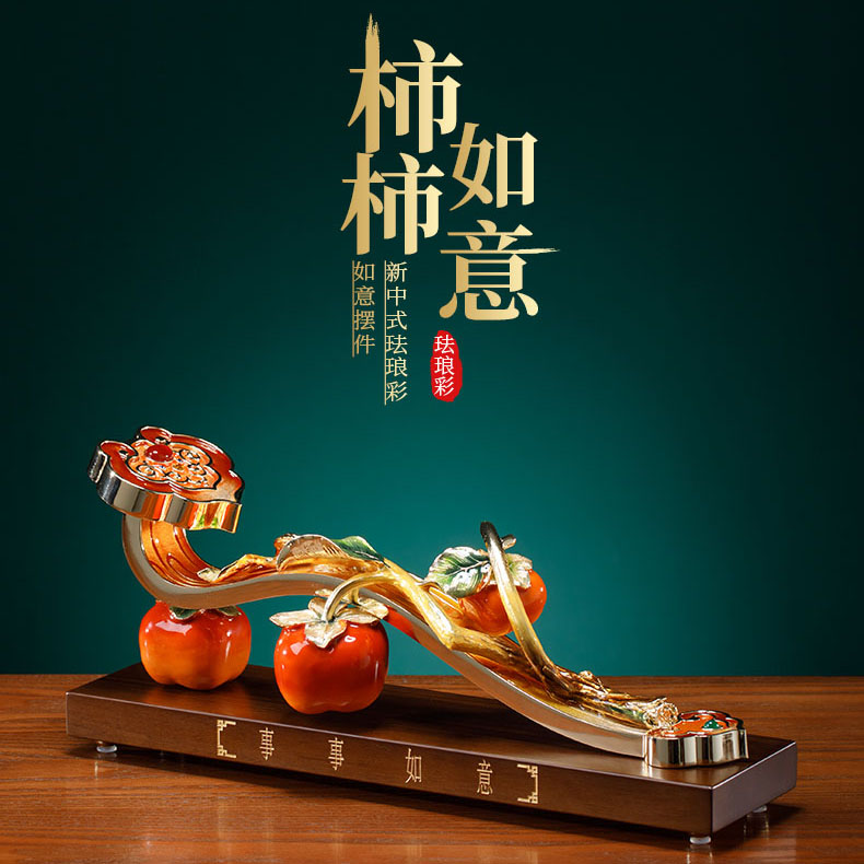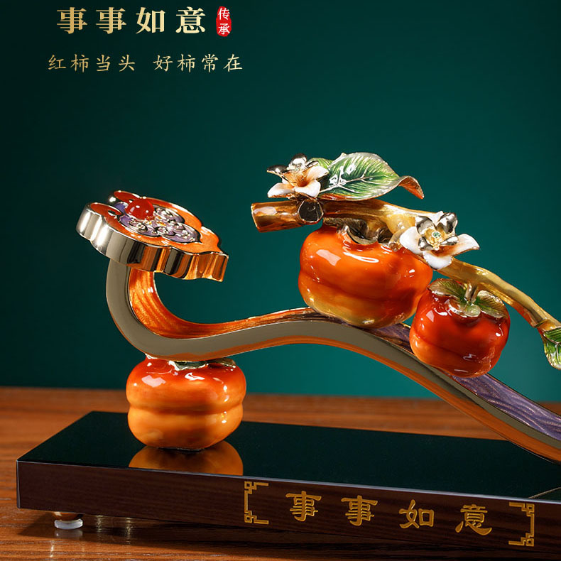 威弗列德柿柿如意珐琅彩新中式客厅摆件领导送礼搬家礼物乔迁礼品
