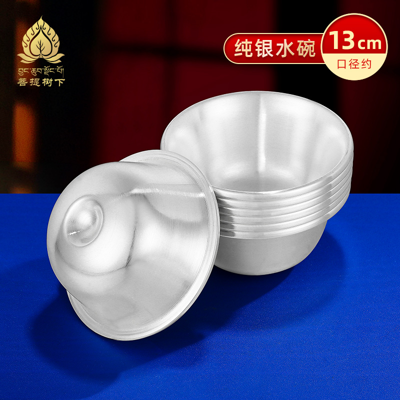 供水杯纯银供茶杯S990光面净水银碗七供杯七支供杯大号12.8cm