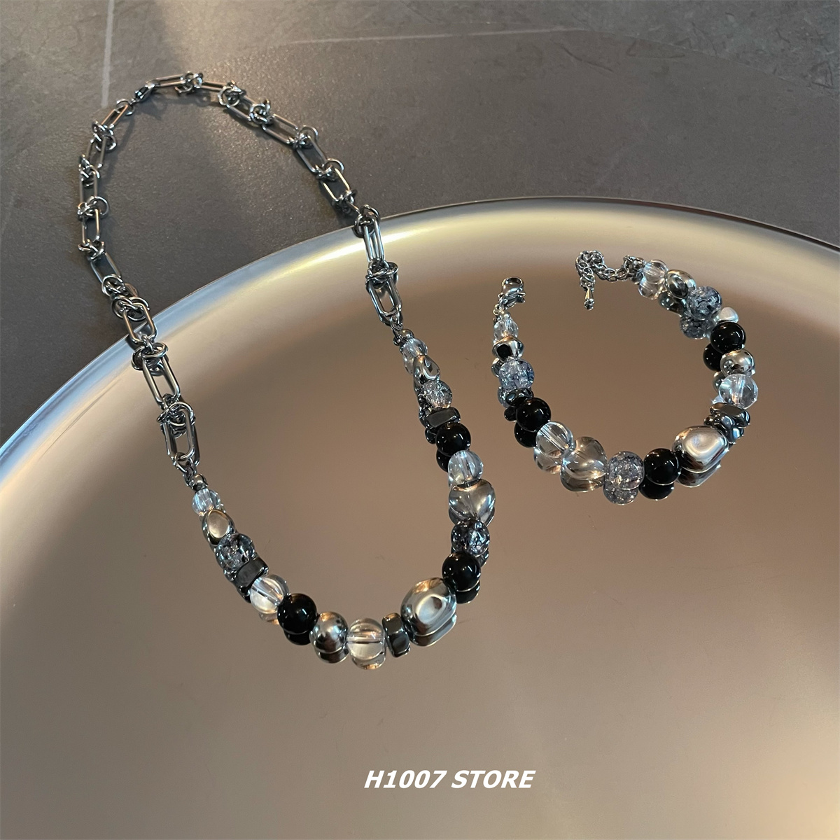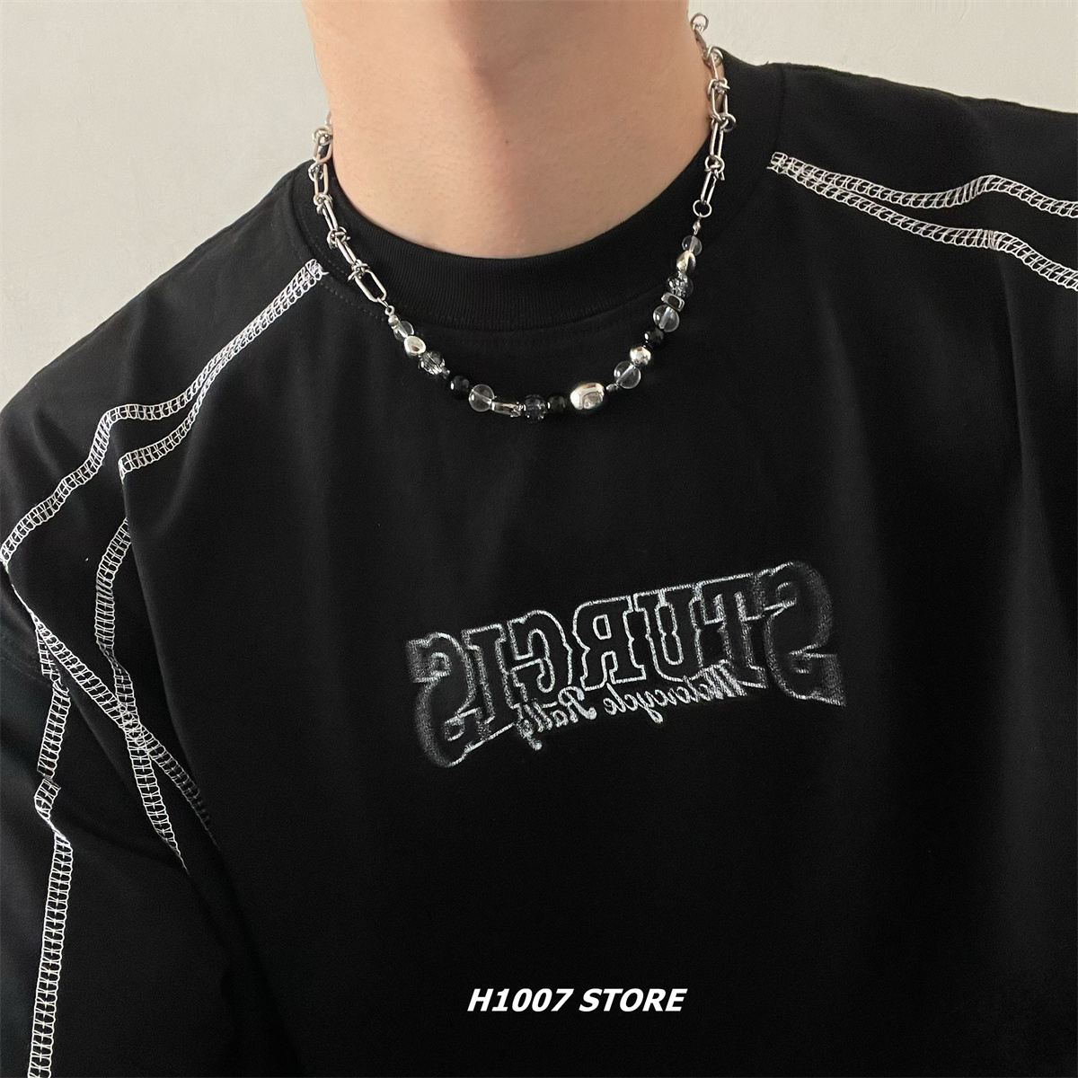 新款串珠拼接男生项链女冷淡风ins嘻哈小众设计高级感锁骨链饰品