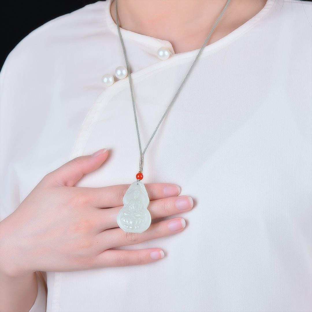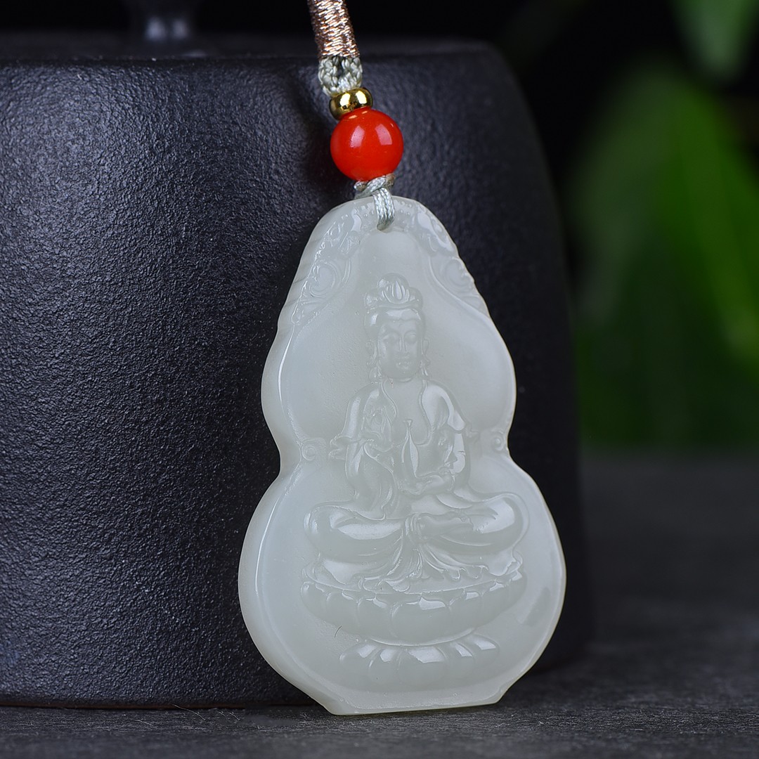 天然真品和田玉观音玉吊坠青白玉福禄观音菩萨玉石玉挂件男女玉器