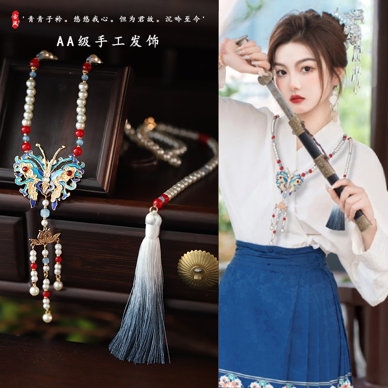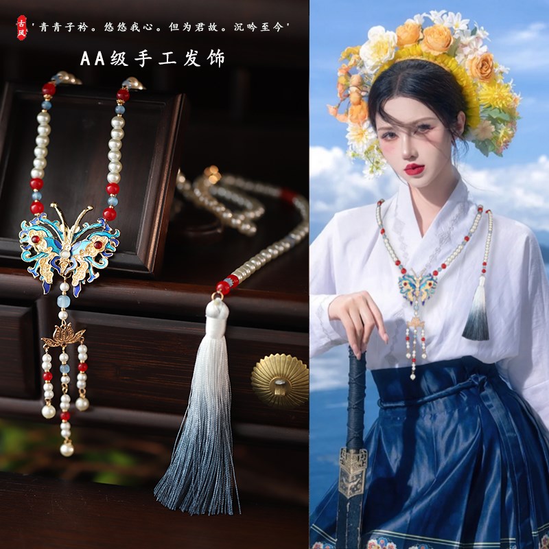 现货速发新中式璎珞长背云项圈古风汉服马面裙配饰明制流苏挂件长