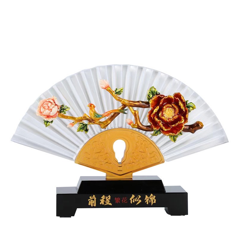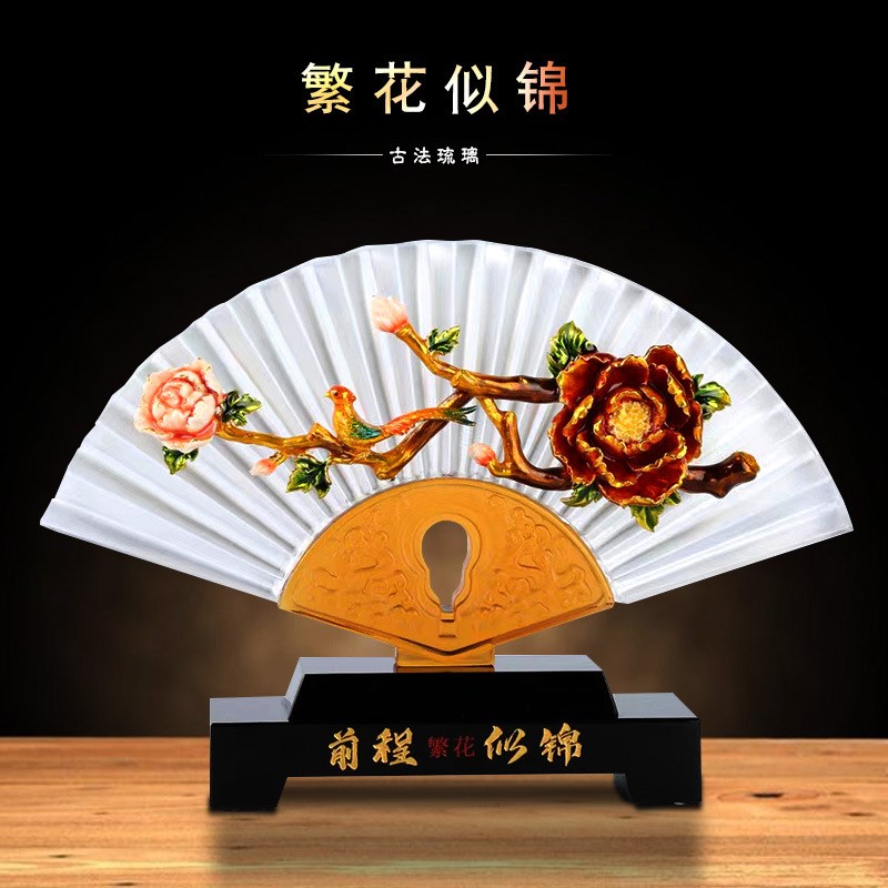 前程似锦古法琉璃扇子摆件居家客厅办公前台桌面装饰商务送礼古典
