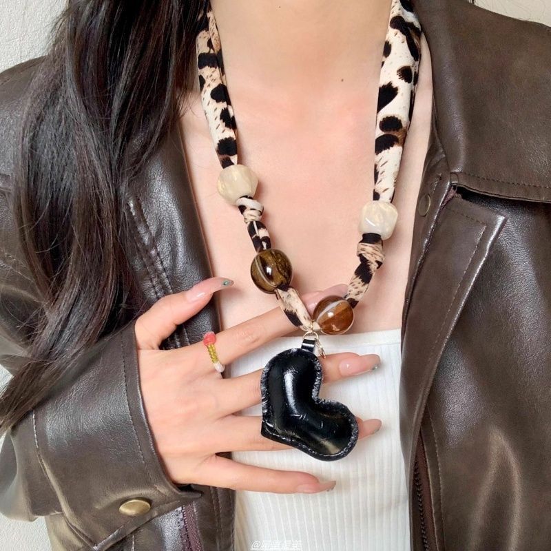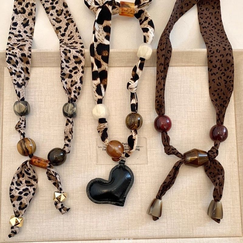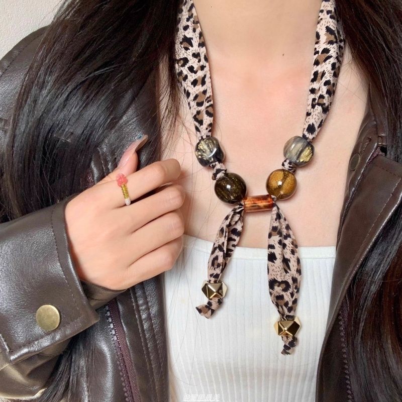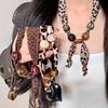 美拉德复古豹纹丝巾项链女小众设计感百搭串珠毛衣链挂脖丝巾配饰