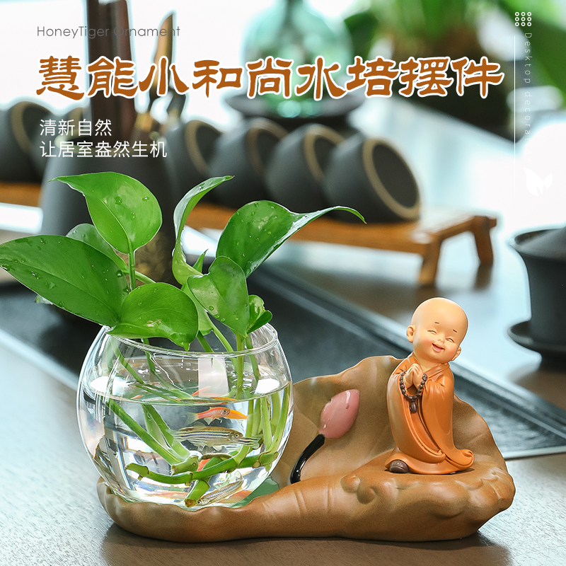 新中式禅意客厅装饰摆件办公茶室创意鱼缸装饰摆设水培花器大花瓶