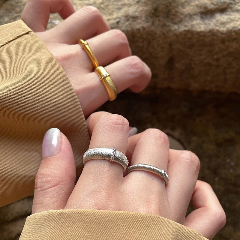 包邮拉丝金银色素圈戒指女轻奢精致优雅小众设计食指戒独特开口指