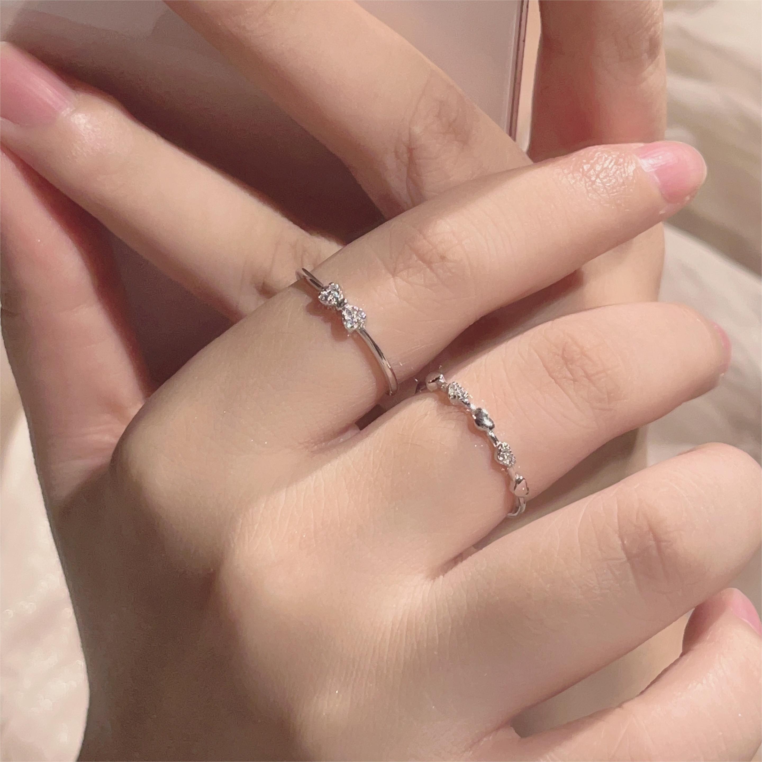 楚噢CHUO纯银S925蝴蝶结爱心戒指甜美轻奢情侣女款闺蜜礼物气质