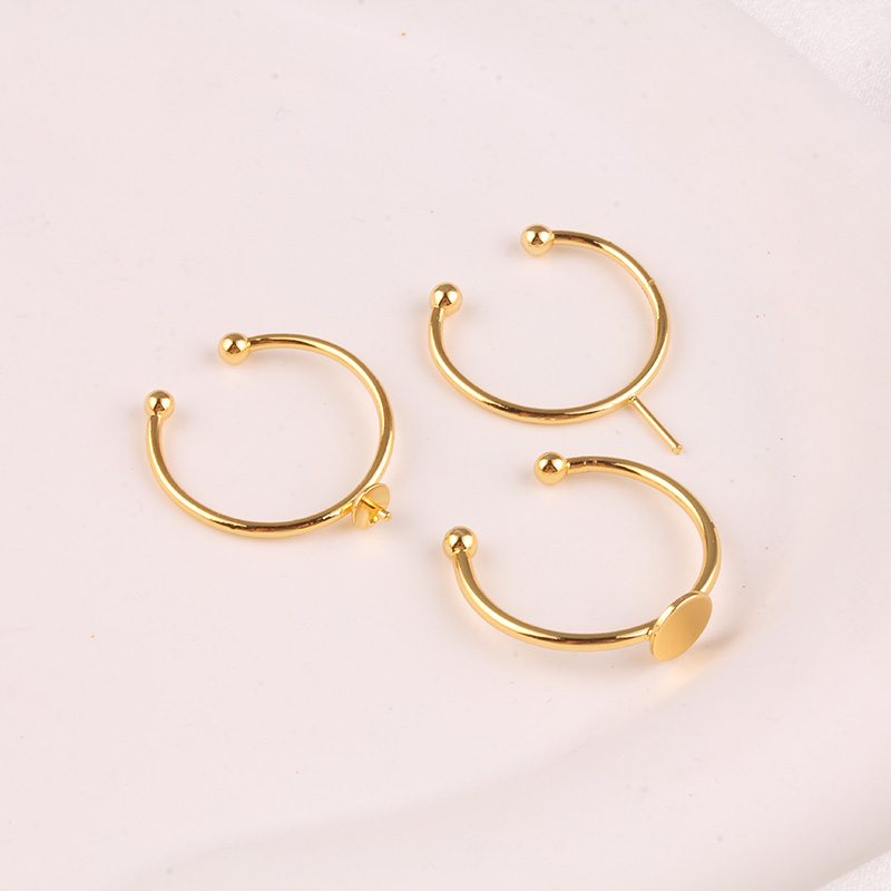18K包金保色可调节戒指平面空托单针指环diy材料手工制作视频配件