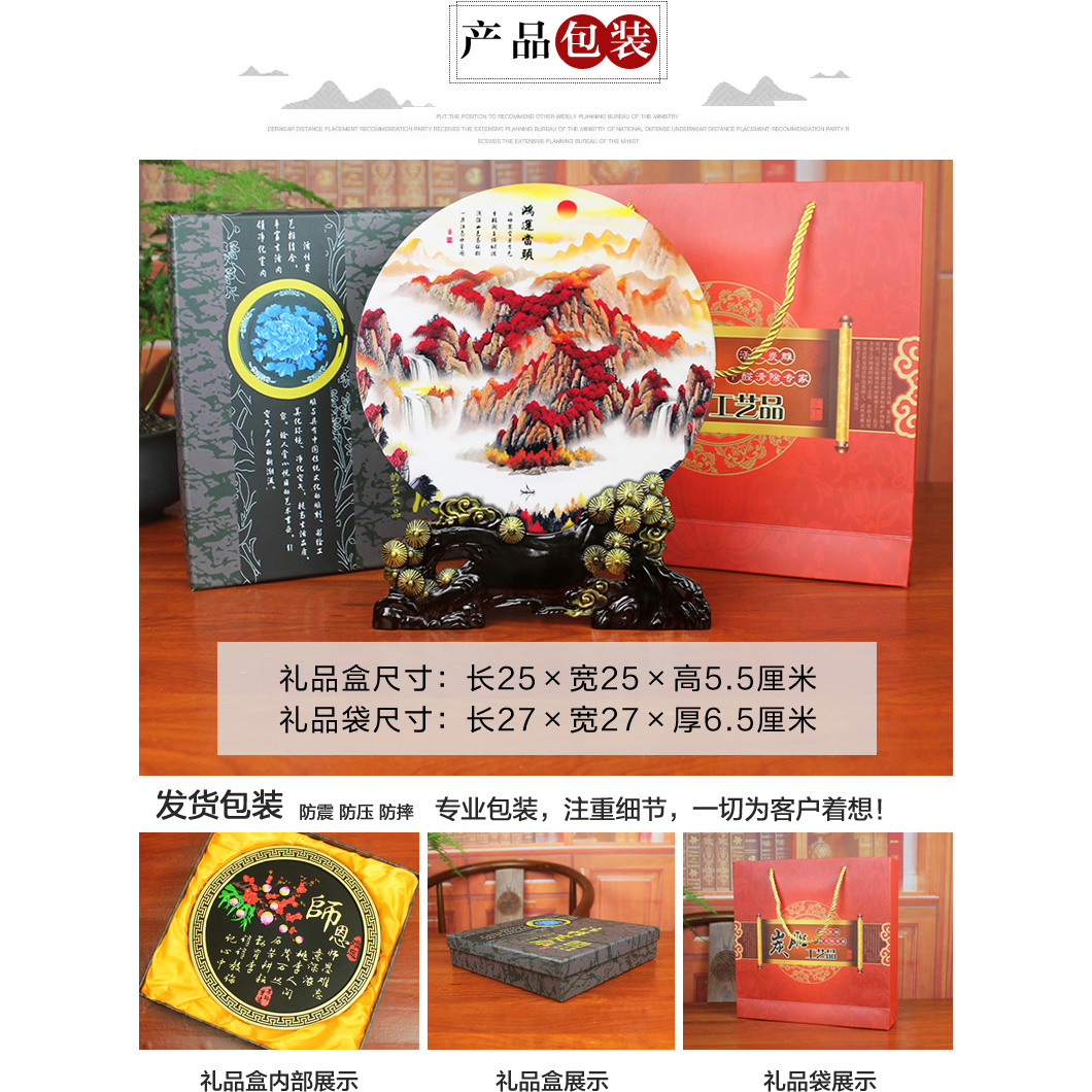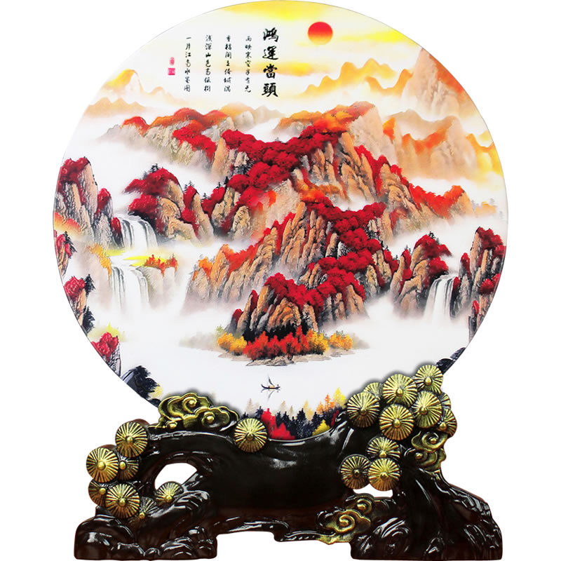 鸿运当头山水画客厅进门入户玄关轻奢装饰品招财办公室桌面小摆件