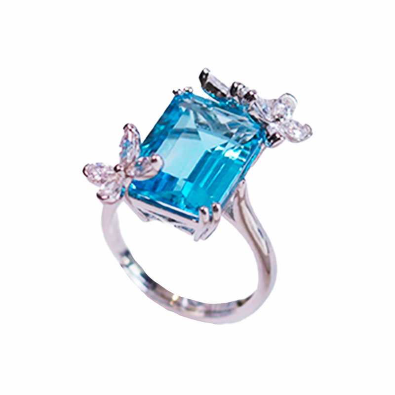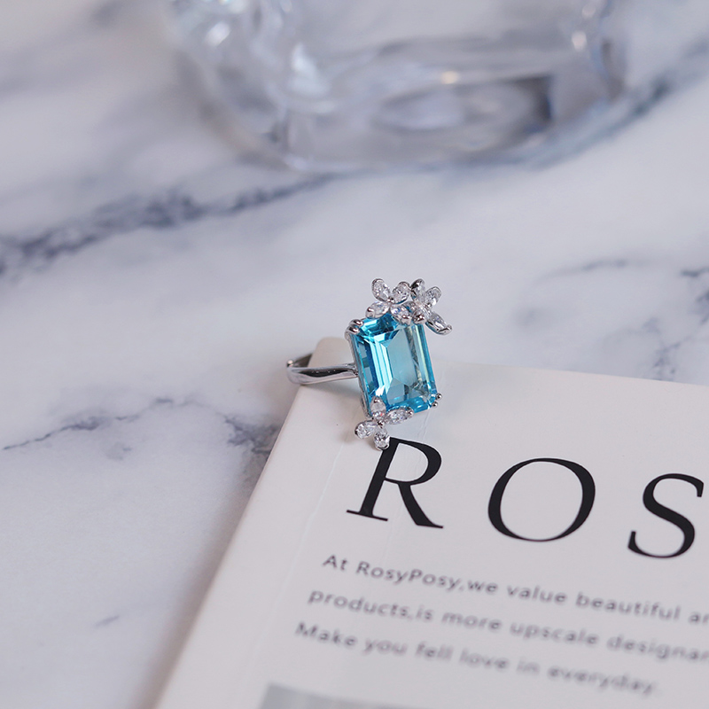 韩雪小红书同款 10克拉蓝水晶仿托帕石戒指女网红圣玛利亚海蓝宝