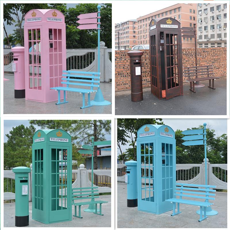 铁艺工艺品网红电话亭套装落地摆件酒吧装饰户外打卡拍照大型道具