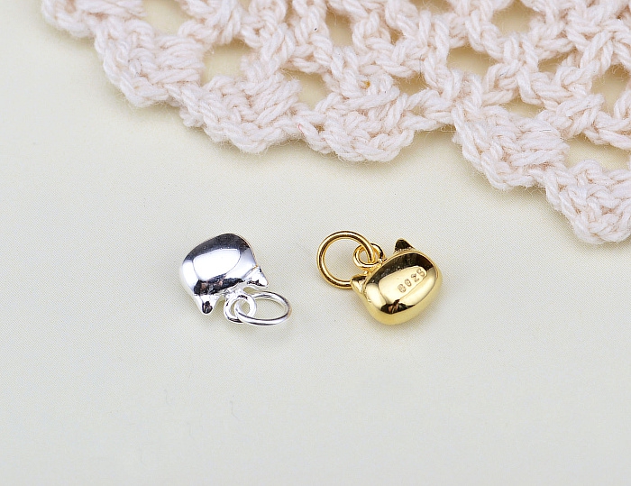 925纯银饰品配件 迷你实心KT猫吊坠 手工DIY串珠材料手链项链配饰