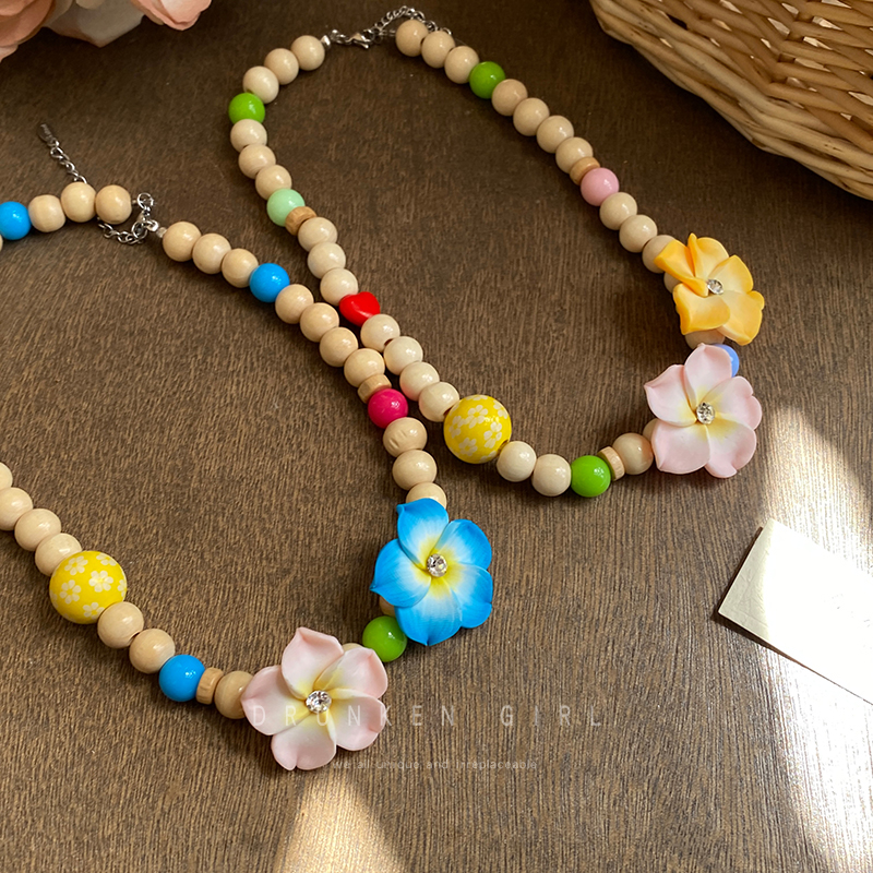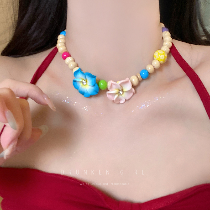 多巴胺彩色鸡蛋花串珠项链女2025新款甜酷锁骨链小众设计颈链配饰