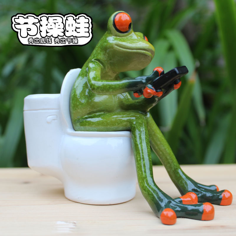 笔筒办公桌面小爱青蛙家居饰品办公室创意礼品休闲工艺品