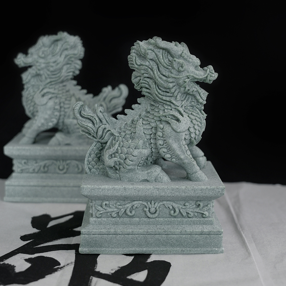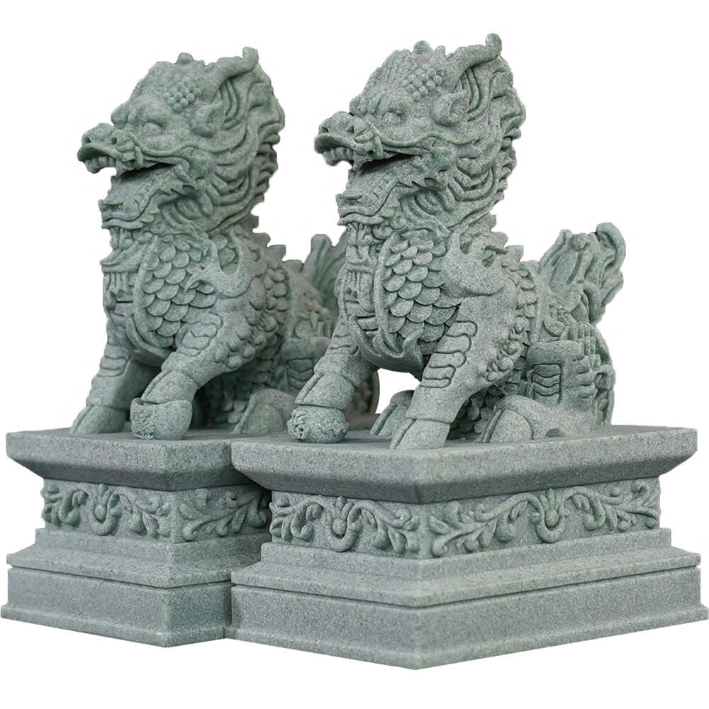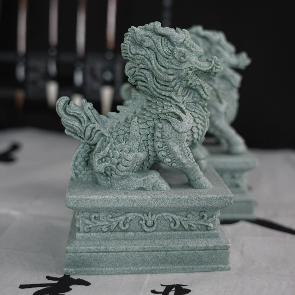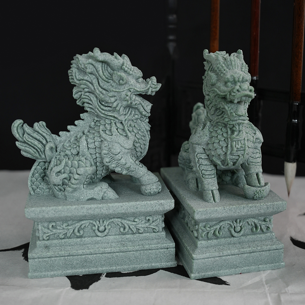 青砂石公母摆件一对镇宅门口看门招财麒麟镇宅茶宠鱼缸造景桌面