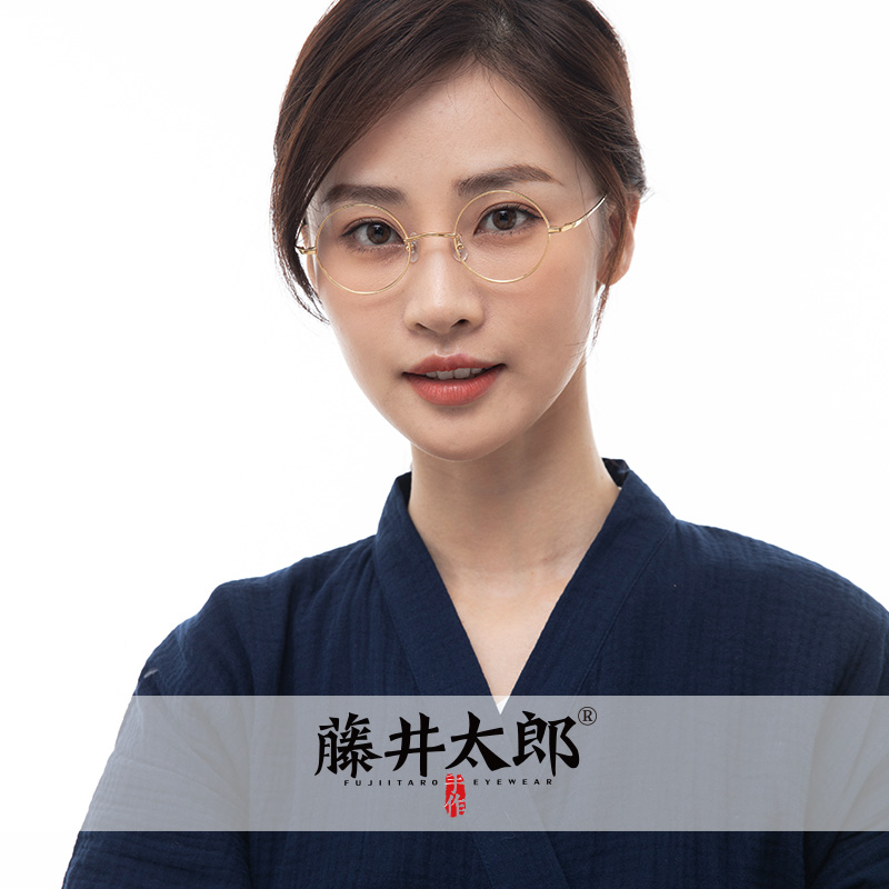 藤井太郎超轻纯钛眼镜框男文艺复古金丝框眼镜小圆框眼镜架近视女