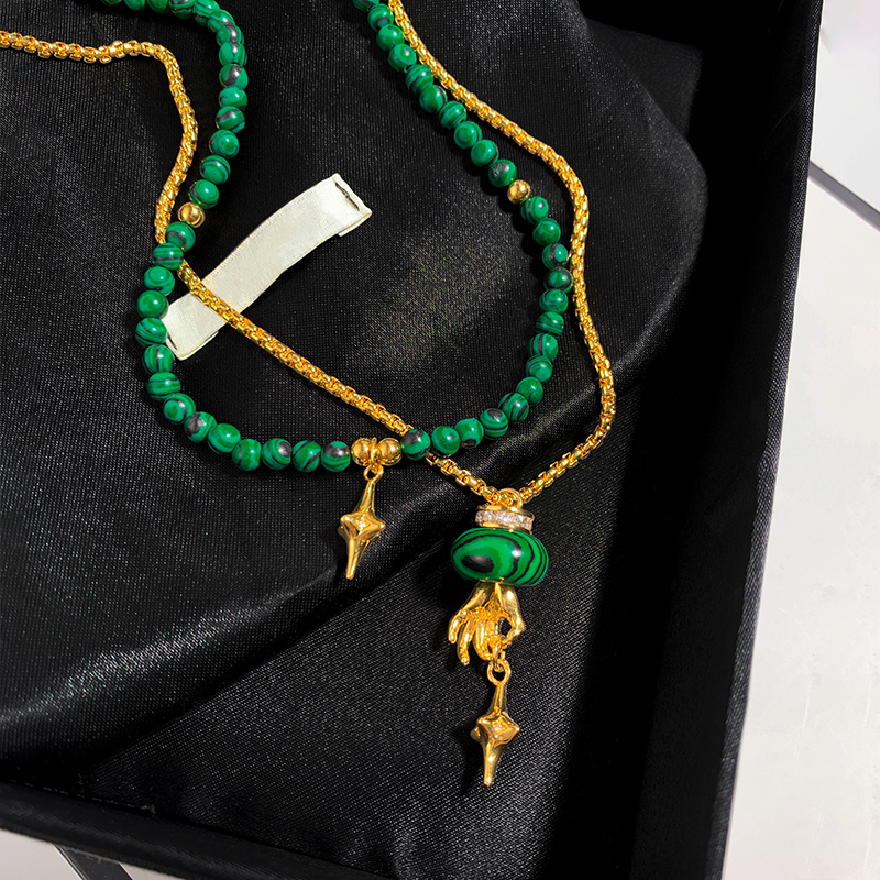 欧美风绿色天然孔雀石串珠项链女轻奢小众高级感叠戴颈链锁骨链