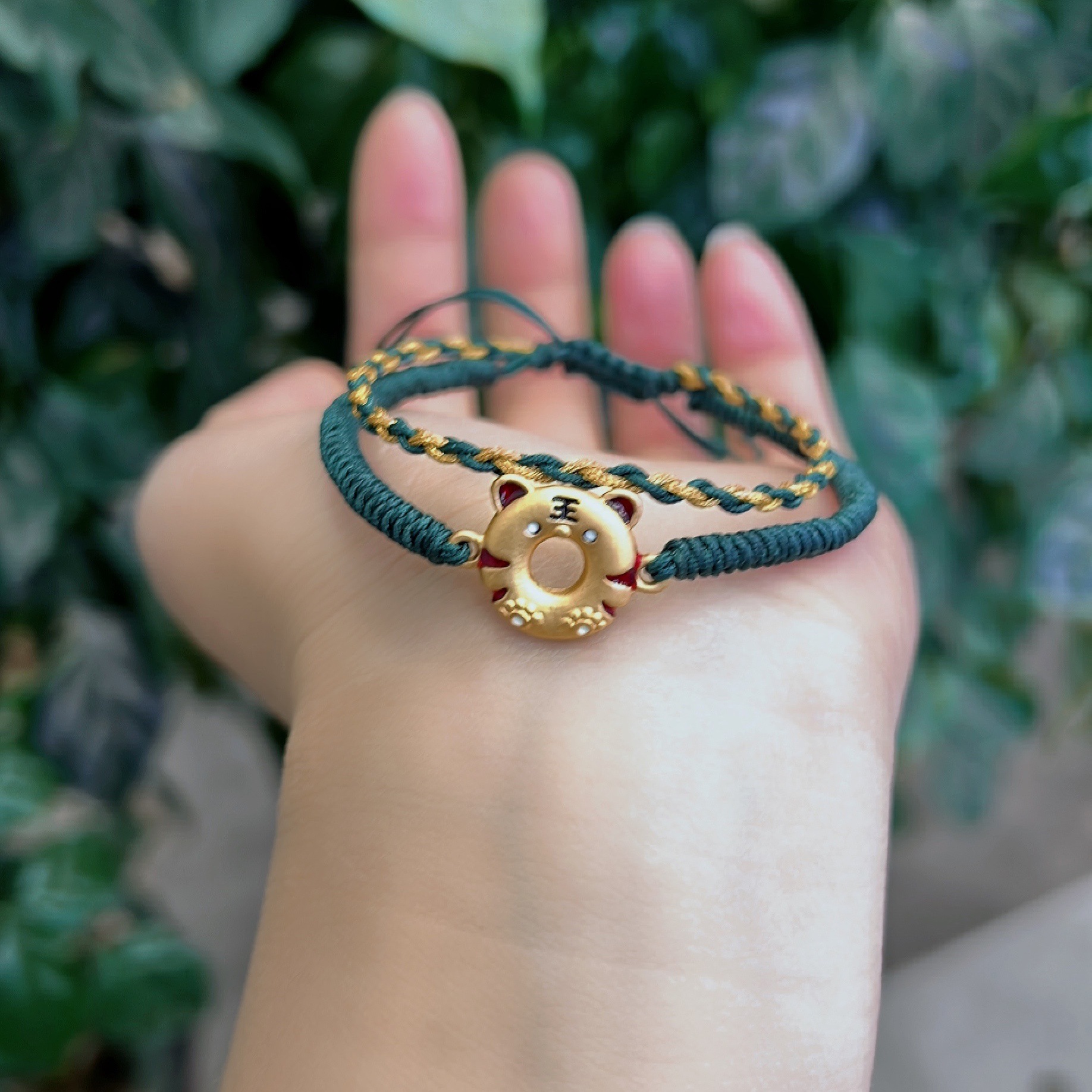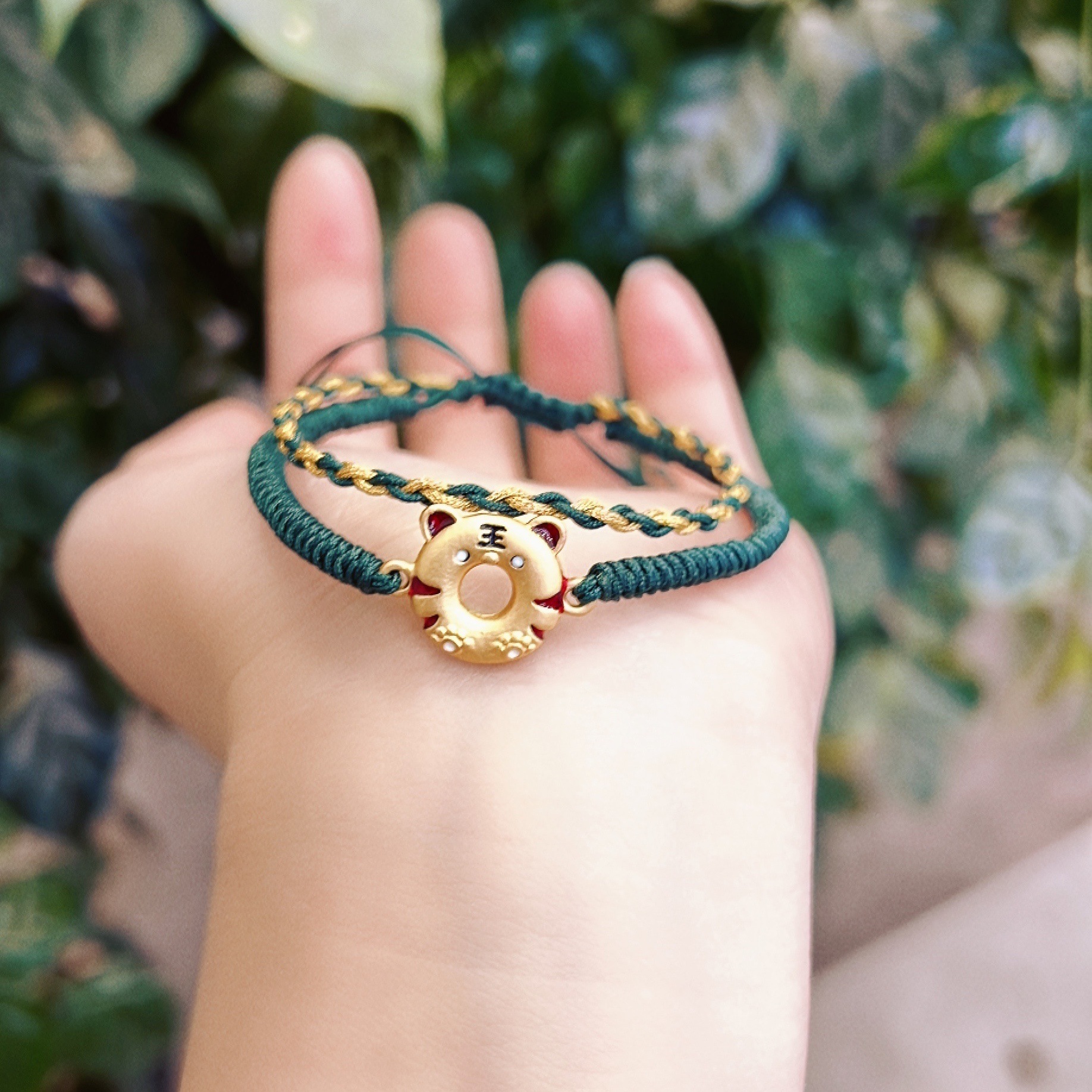 小老虎手链虎年本命年红绳手链女保色甜甜圈虎如虎添翼编织情手