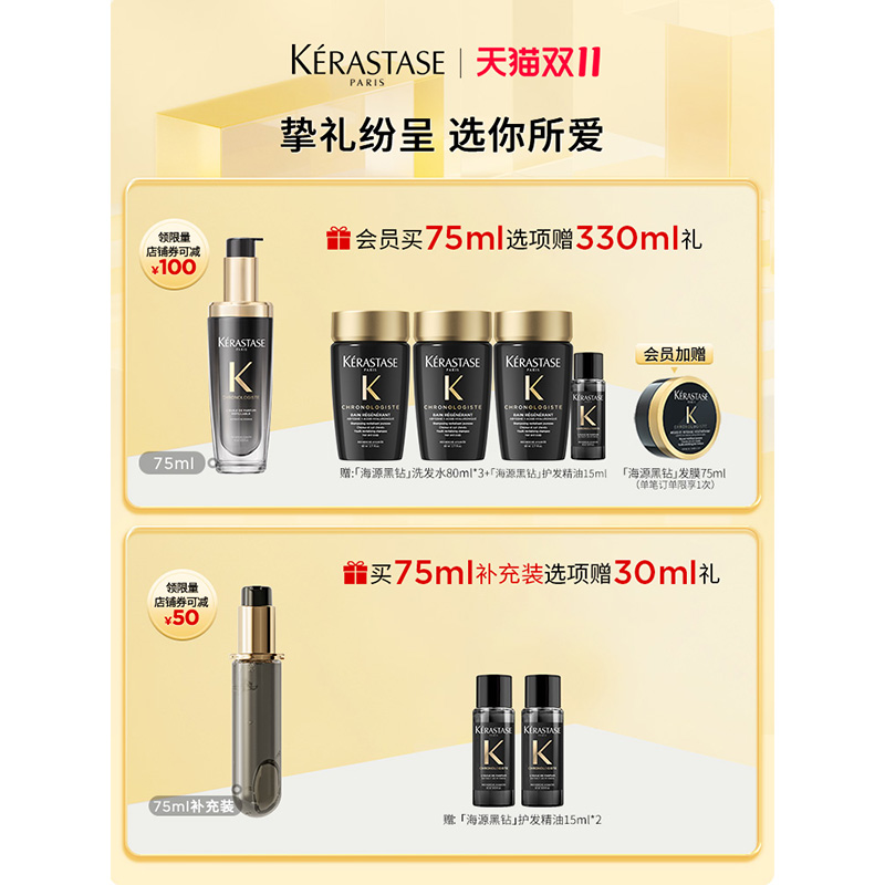 【双11现货速抢】^卡诗海源黑钻护发精油头发亮泽柔顺滋润香氛