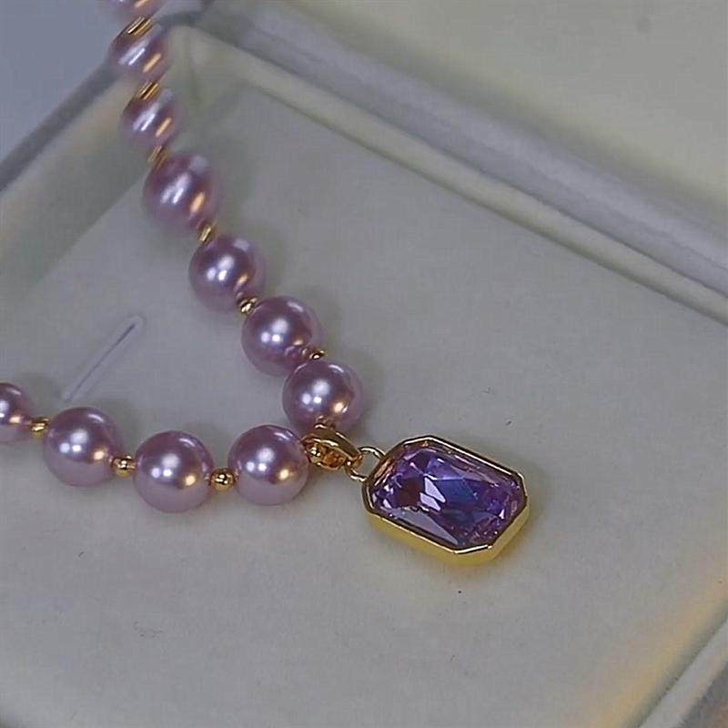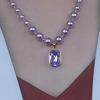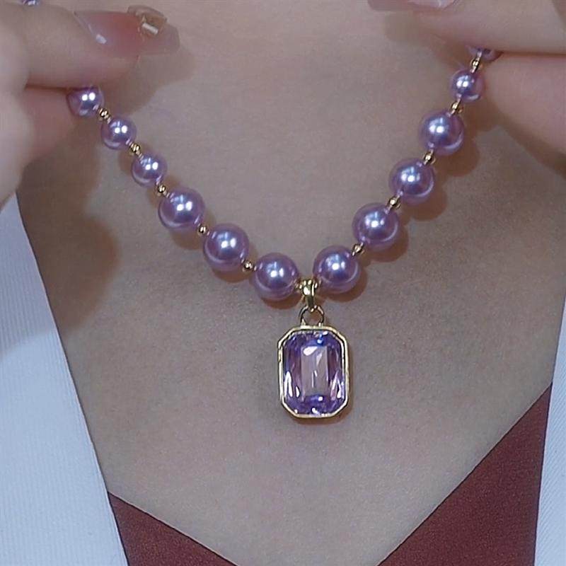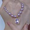 铜合金紫色锆石方糖珍珠项链紫寓满贯气质百搭款时尚法式优雅饰品