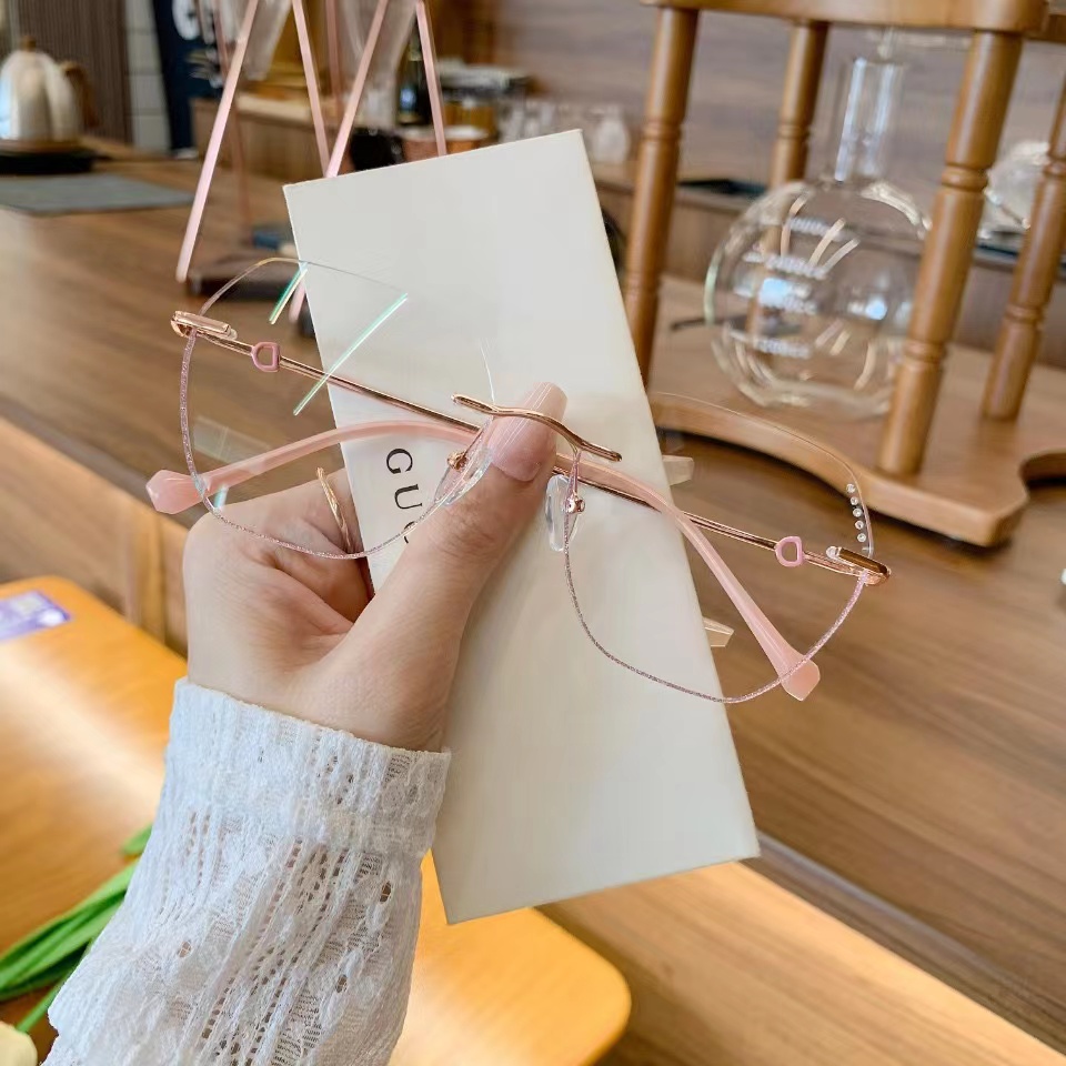 超轻无边框近视眼镜女款程成品可配有度数镜片无框防蓝光素颜眼睛