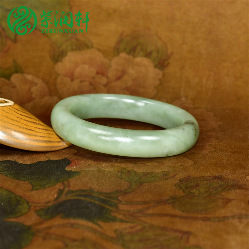 紫润轩新疆和田玉手镯青白飘翠青61MM且末料亚光玉镯高油收藏级