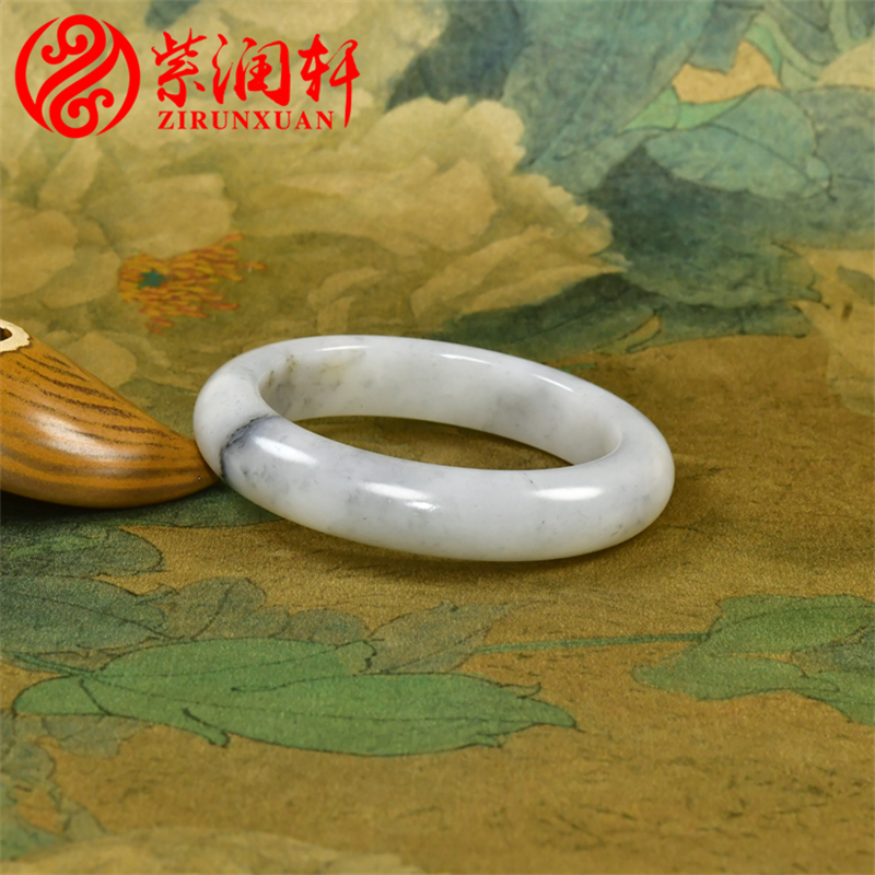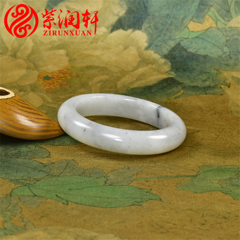紫润轩新疆和田玉白玉籽料手镯青花福镯玉镯56 8MM意境水墨传家级